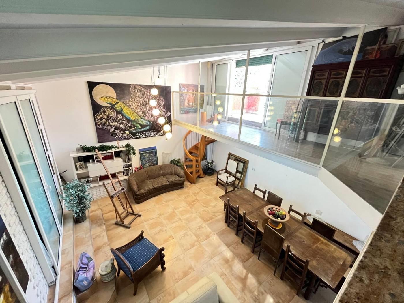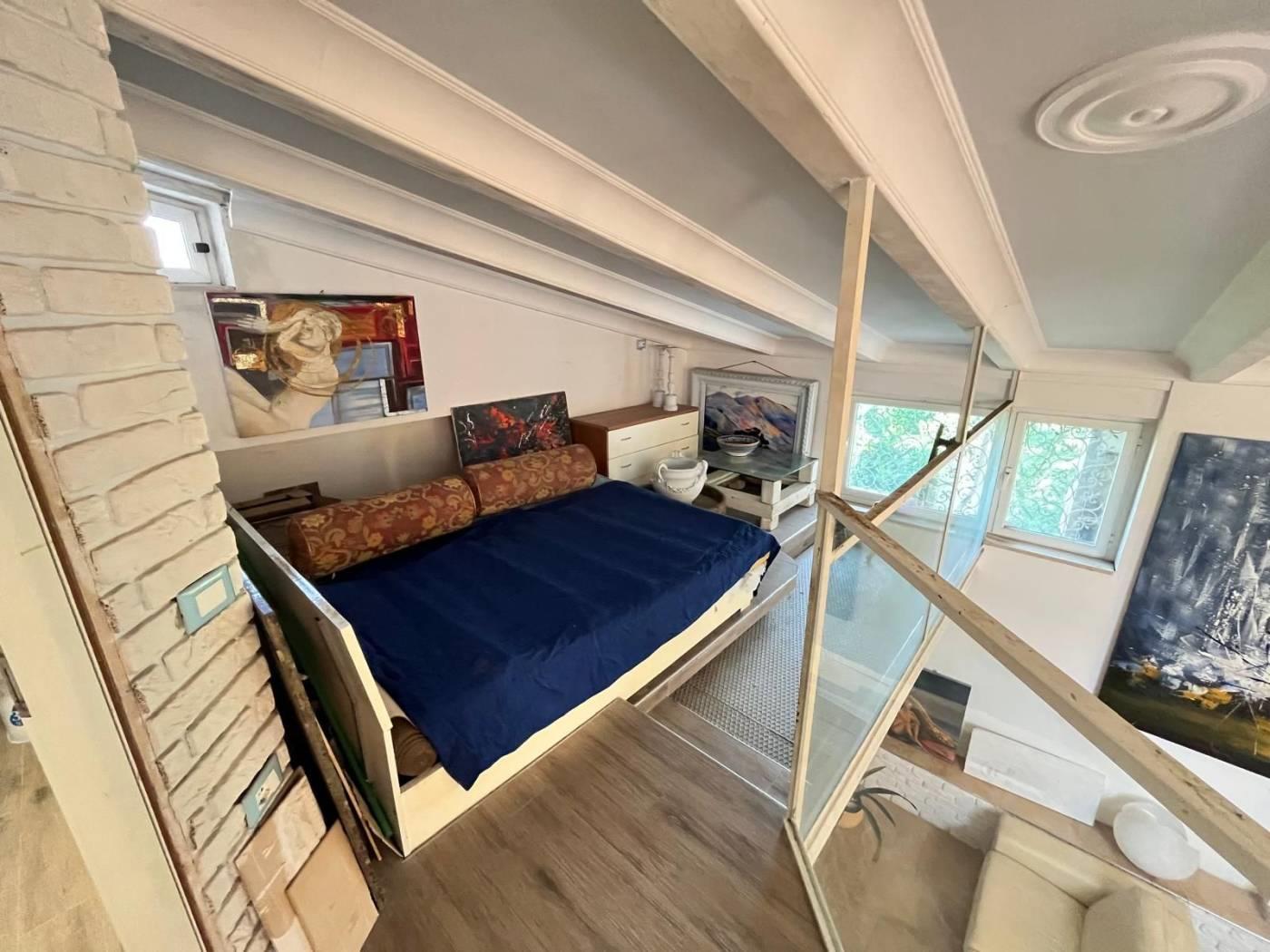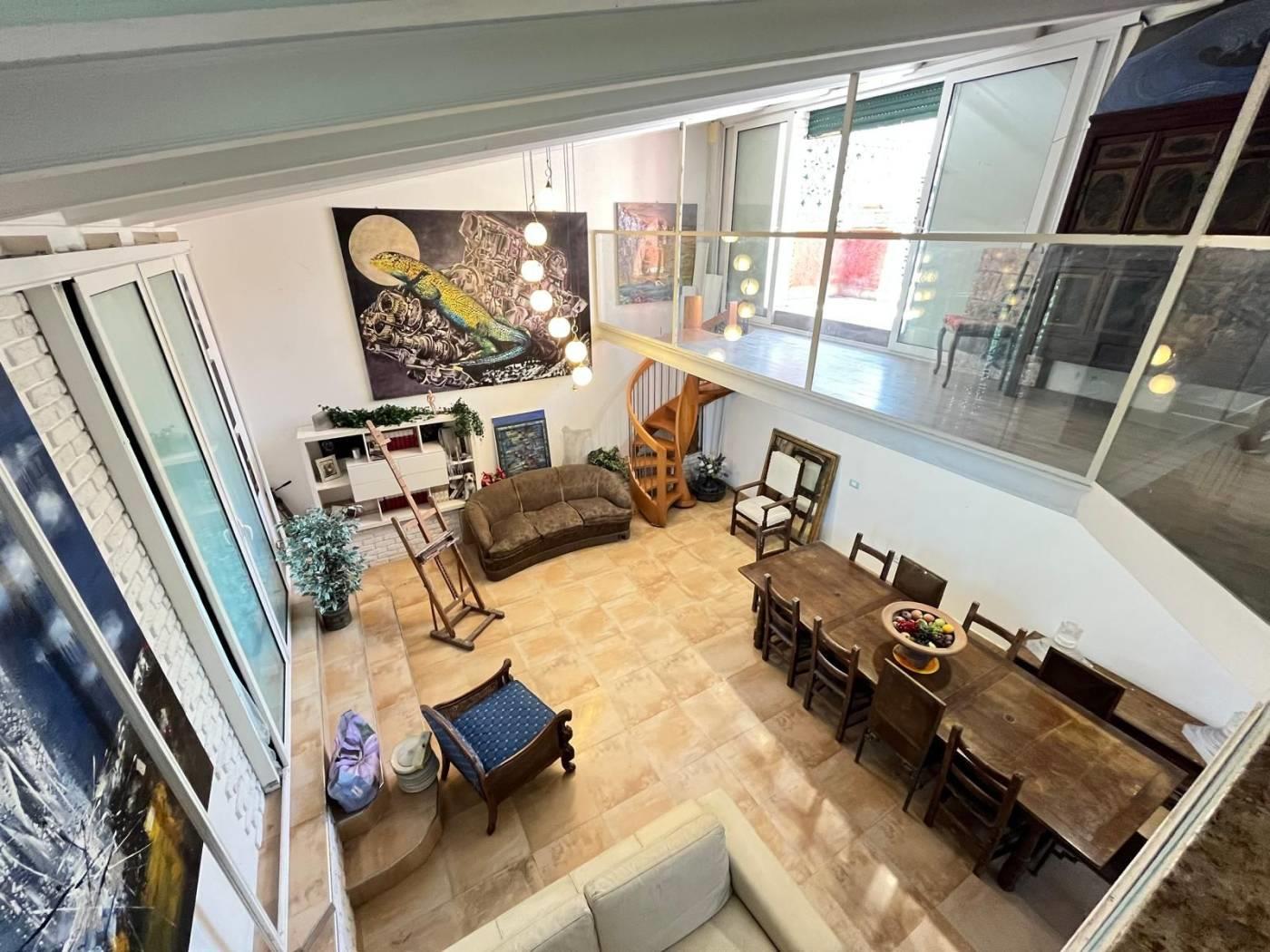 Si tratta di un Loft di circa 70 mq, con soffitti alti circa 4,40 metri e travi in ferro a vista per uno stile tipicamente newyorkese senza sfoghi esterni.