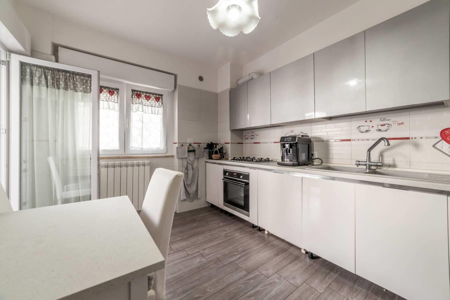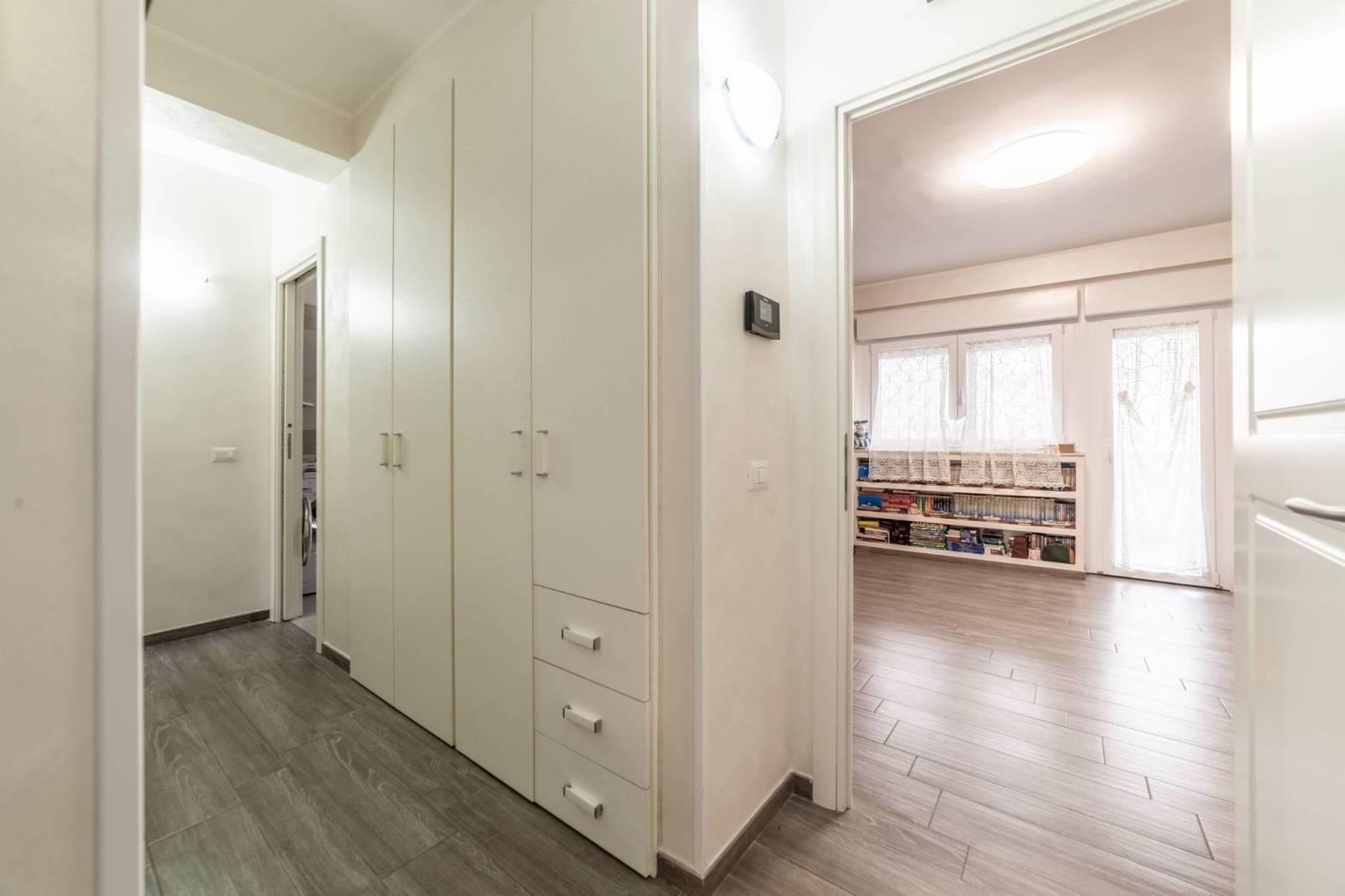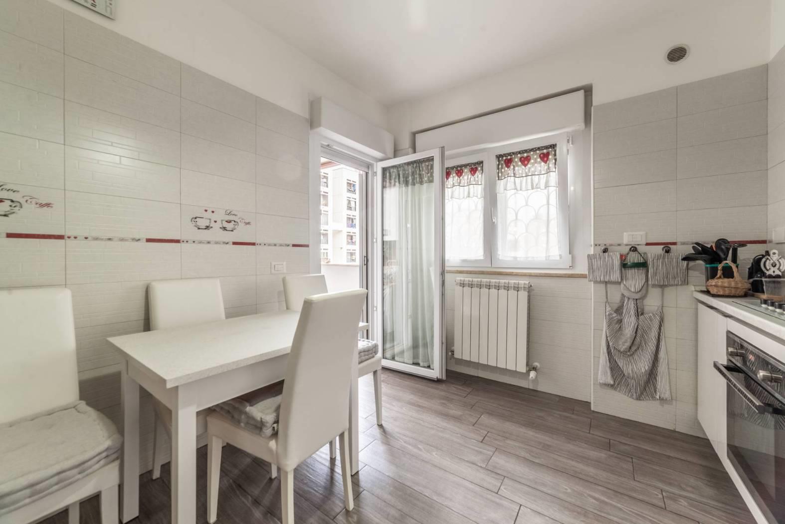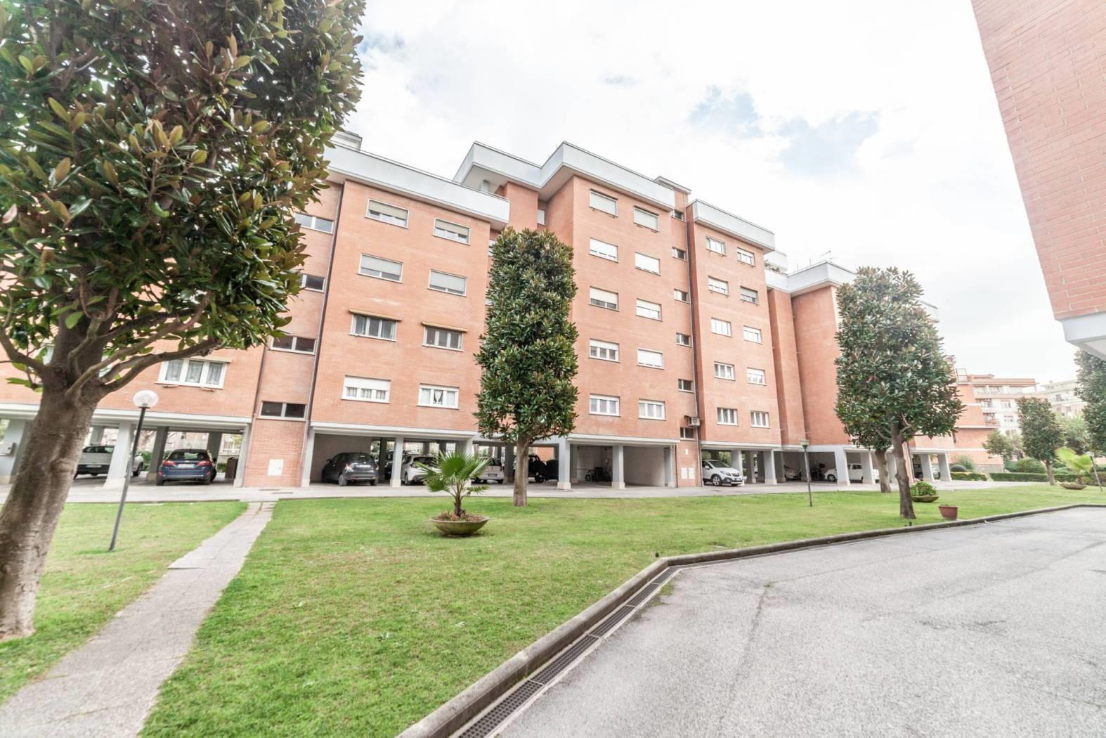 L'appartamento si trova all'interno di un complesso privato adiacente a Repubbliche Marinare, in una posizione centrale. Collocato al piano nobile, gode di una doppia esposizione con vista panoramica sui giardini circostanti. La proprietà è composta da un ingresso che conduce a un soggiorno luminoso con pavimento in gres porcellanato e infissi con doppio vetro e tapparelle elettriche. La cucina è abitabile, separata da cui è possibile accedere a un ampio balcone che si affaccia sul parco. La zona notte comprende un corridoio con armadi a muro, una camera matrimoniale, una cameretta e due bagni, di cui uno dotato di vasca. Completa la proprietà un posto auto coperto. Nelle vicinanze sono presenti supermercati come il Castoro e vari servizi di prima necessità. L'immobile si trova su terreno in diritto di superficie.
