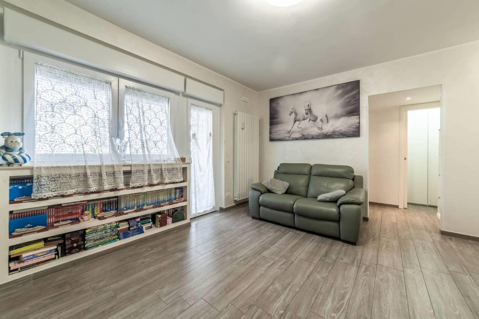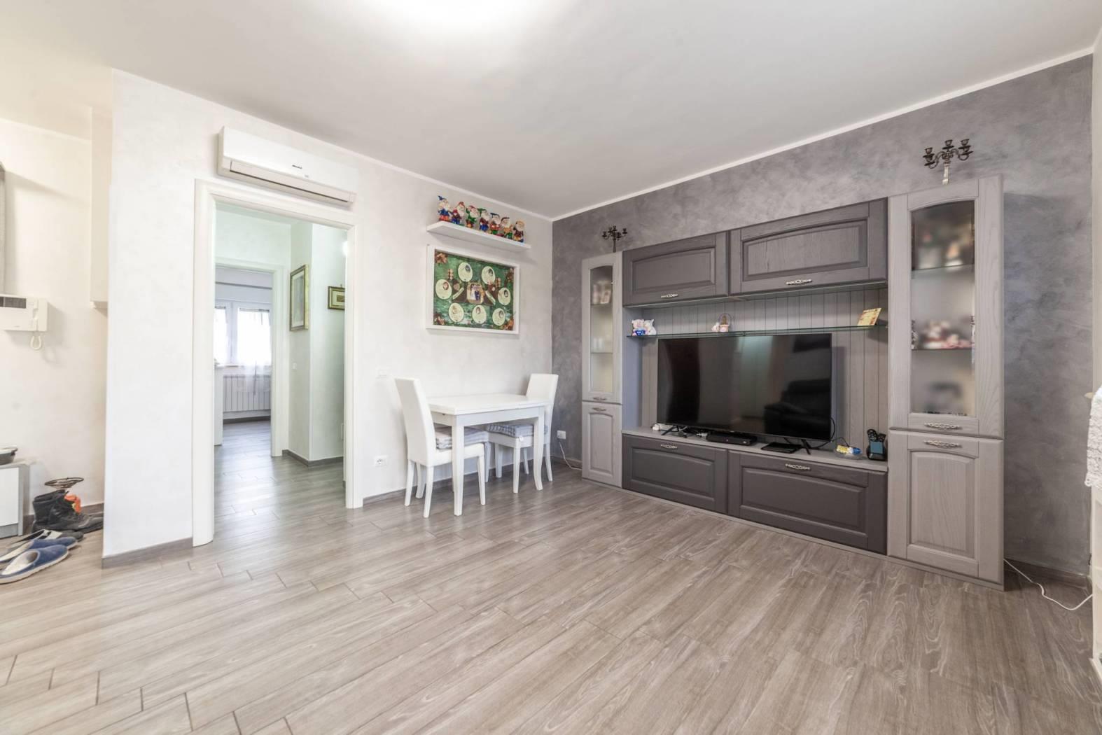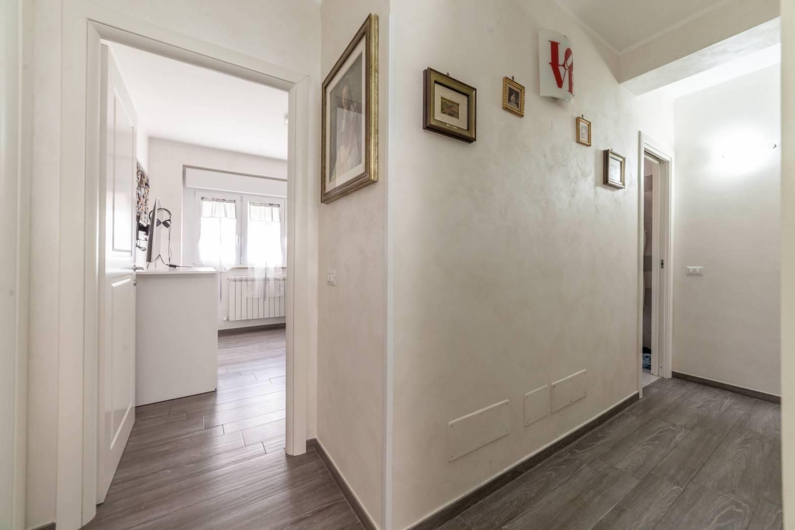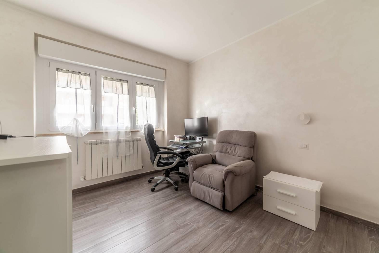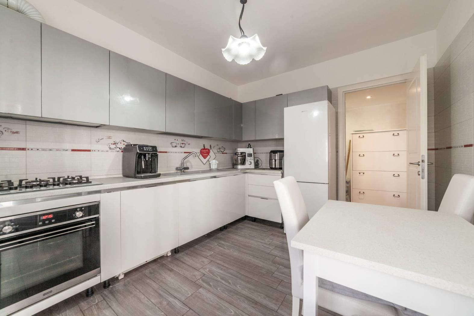 L'appartamento si trova all'interno di un complesso privato adiacente a Repubbliche Marinare, in una posizione centrale. Collocato al piano nobile, gode di una doppia esposizione con vista panoramica sui giardini circostanti. La proprietà è composta da un ingresso che conduce a un soggiorno luminoso con pavimento in gres porcellanato e infissi con doppio vetro e tapparelle elettriche. La cucina è abitabile, separata da cui è possibile accedere a un ampio balcone che si affaccia sul parco. La zona notte comprende un corridoio con armadi a muro, una camera matrimoniale, una cameretta e due bagni, di cui uno dotato di vasca. Completa la proprietà un posto auto coperto. Nelle vicinanze sono presenti supermercati come il Castoro e vari servizi di prima necessità. L'immobile si trova su terreno in diritto di superficie.