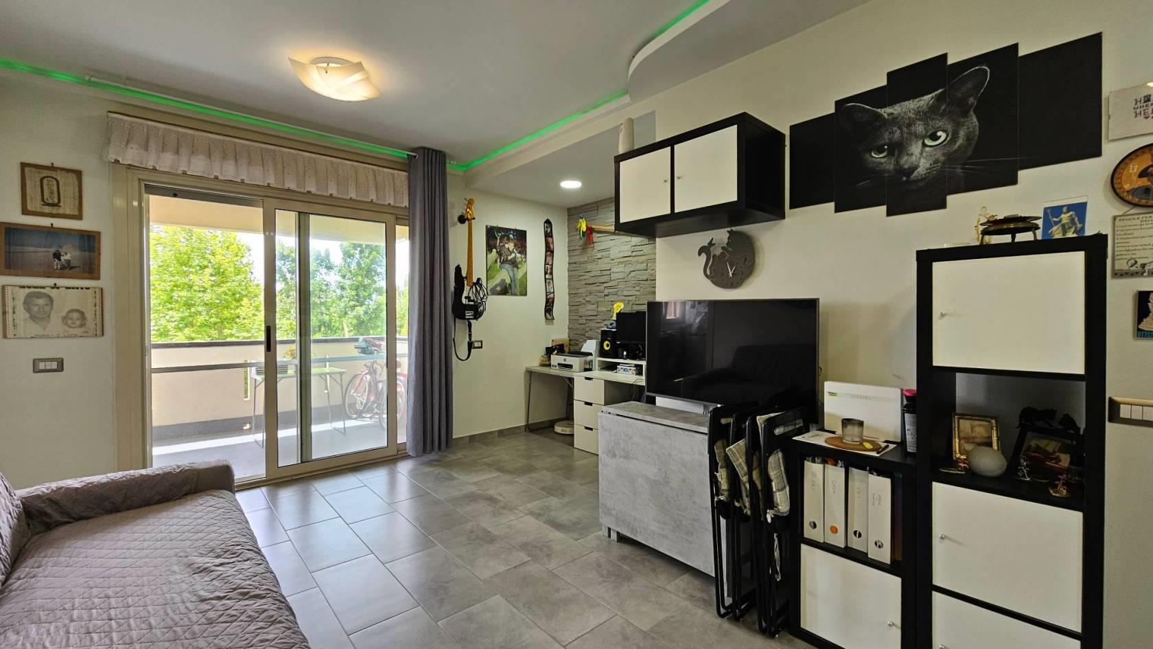 L’immobile si trova in un comparto privato, silenzioso e ben curato. Si compone di ingresso, luminoso soggiorno, cucina abitabile, due camere matrimoniali (una con cabina armadio), bagno moderno e ampio balcone con affaccio sul giardino condominiale. Sul balcone è presente un ampio ripostiglio esterno che ospita anche la caldaia.