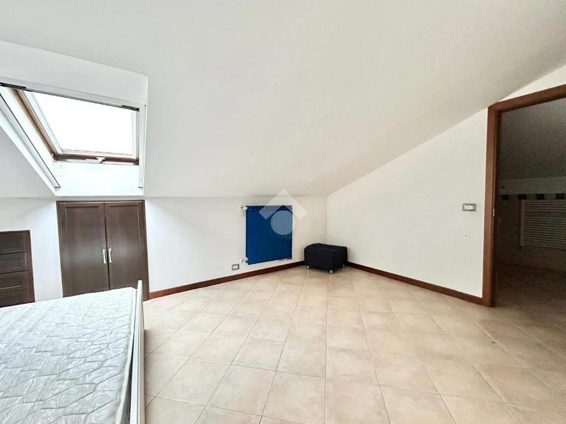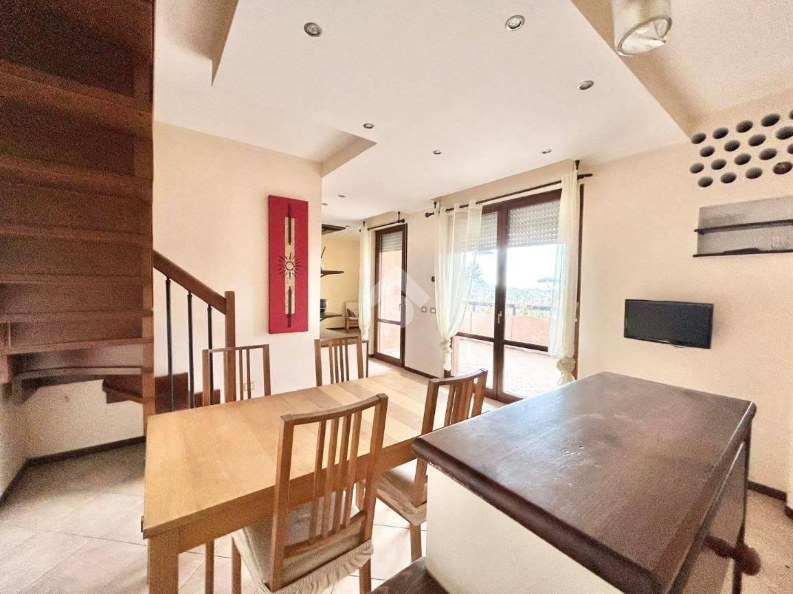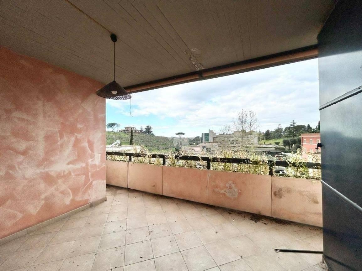 DIVINO AMORE, in recente complesso residenziale, disponiamo di un appartamento su due piani composto da ampio soggiorno con cucinotto , 2 camere da letto mansardate, due bagni, terrazzo e balcone. L'immobile è in buono stato interno, con riscaldamento e condizionamento autonomi ed è dotato di un ampio spazio sottotetto utilizzabile come deposito di servizio. Cantina e posto auto scoperto privato pertinenziale.