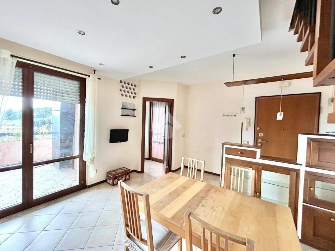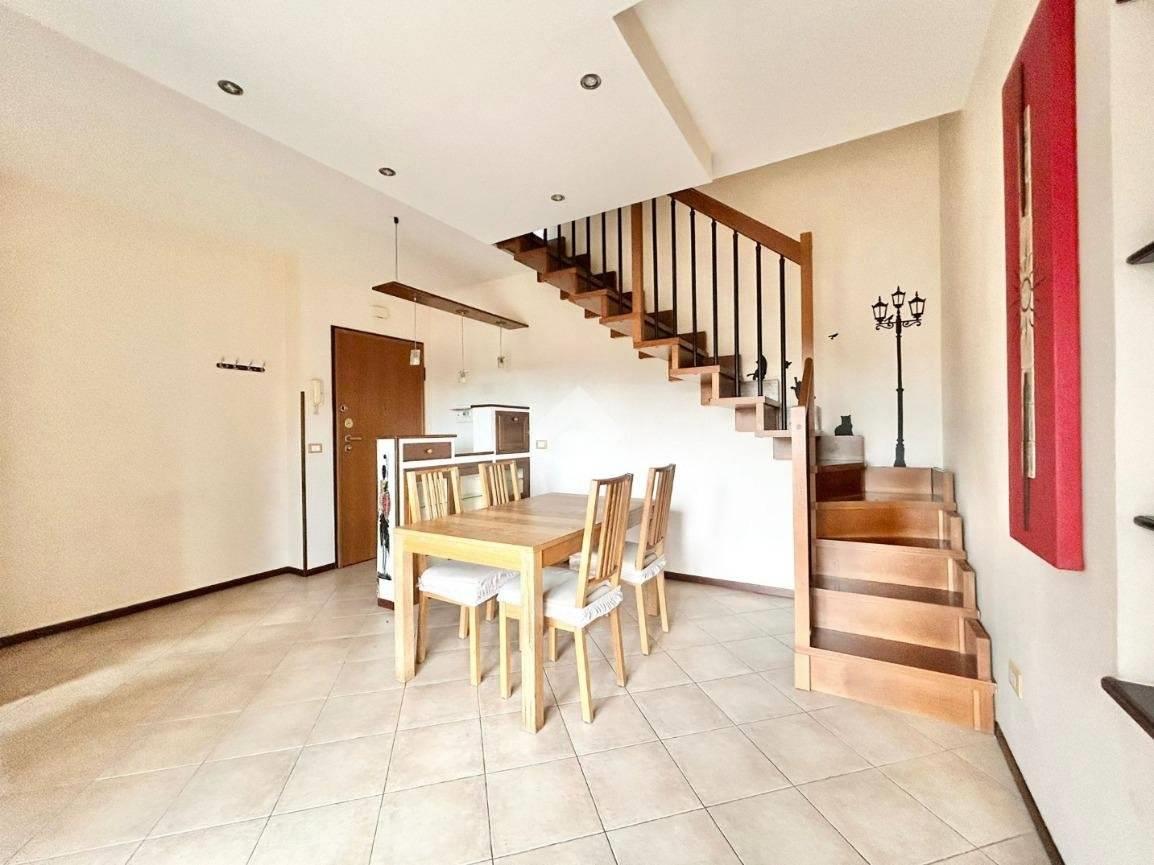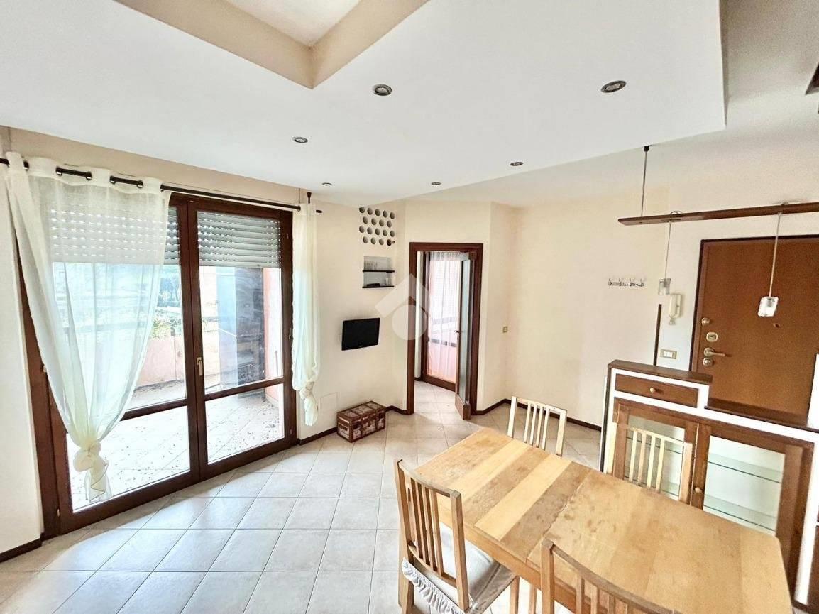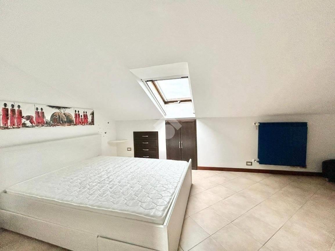 DIVINO AMORE, in recente complesso residenziale, disponiamo di un appartamento su due piani composto da ampio soggiorno con cucinotto , 2 camere da letto mansardate, due bagni, terrazzo e balcone. L'immobile è in buono stato interno, con riscaldamento e condizionamento autonomi ed è dotato di un ampio spazio sottotetto utilizzabile come deposito di servizio. Cantina e posto auto scoperto privato pertinenziale.