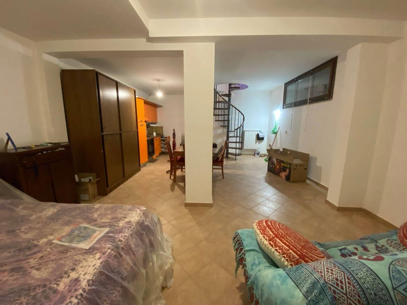 L'immobile, attualmente dato in locazione, si presenta in ottimo stato di conservazione e si compone di un ampio soggiorno con cucina a vista parzialmente arredata, una spaziosa camera da letto e un bagno, dal salone si accede tramite una scala al piano seminterrato in una ampia sala di circa 35mq gia ristrutturata e predisposta per qualsiasi trasformazione che si voglia fare.