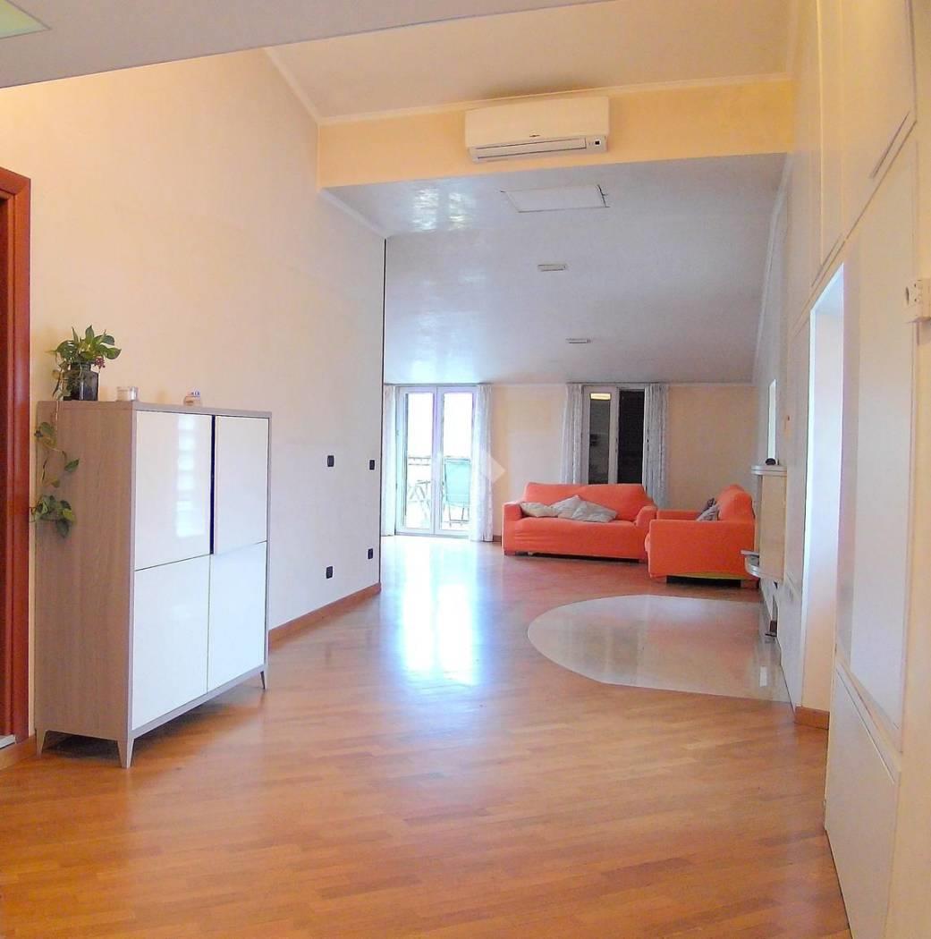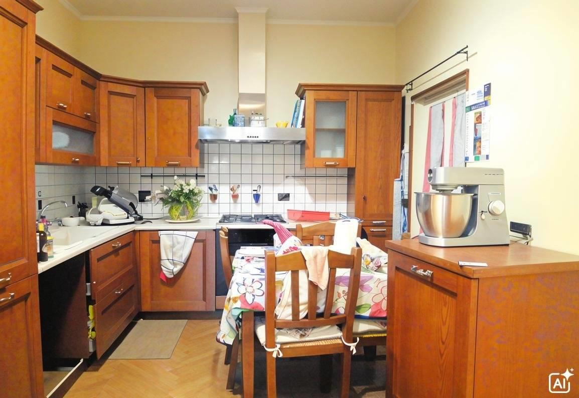 Dunque il soggiorno ha una doppia esposizione ed un terrazzo vivibile, e da esso si accede all'angolo cucina con altro balcone in cui troviamo la caldaia per acqua calda e riscaldamento autonomo.