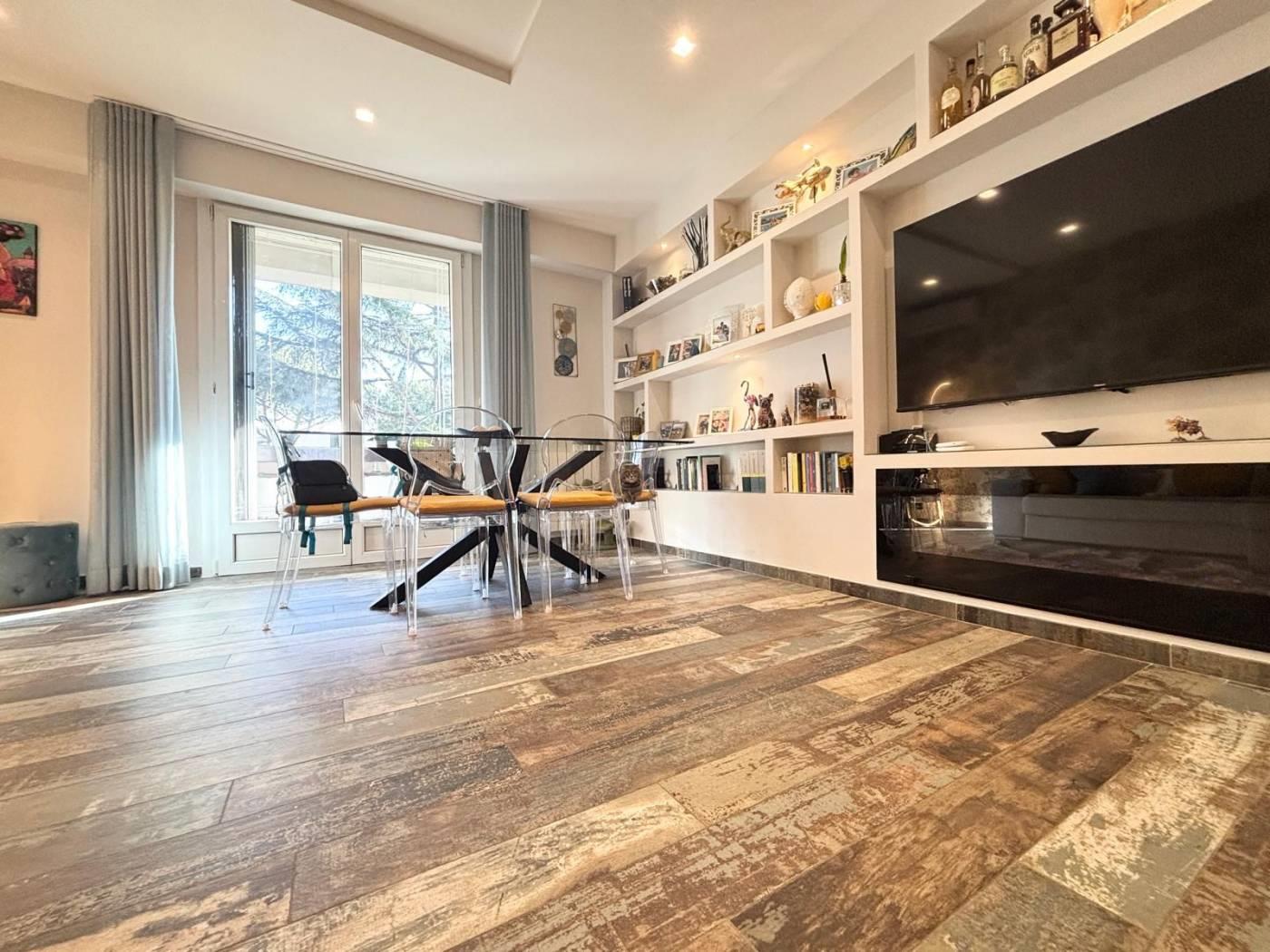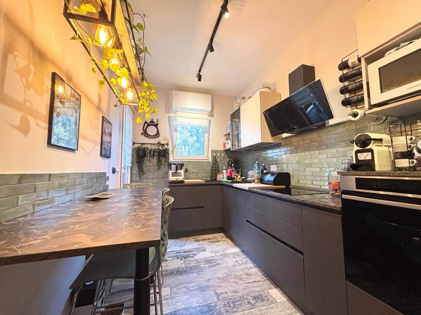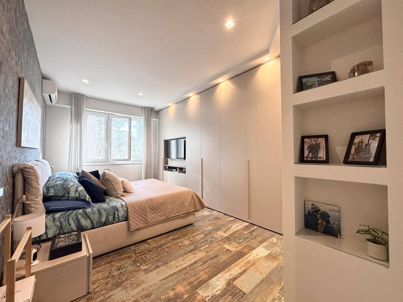 L'appartamento si trova in una posizione comoda, ben collegata a scuole, parchi e servizi essenziali, con facile accesso alle principali vie di comunicazione. La soluzione abitativa comprende un ampio salone, una cucina, due camere da letto, un bagno, un ripostiglio ed un balcone. Completano la proprietà una cantina ed un posto auto. L'immobile è stato completamente RISTRUTTURATO, con materiali di pregio e finiture di alta qualità, pavimentazione in gress porcellanato Sant'Agostino, infissi PVC doppio vetro con tapparelle elettriche e zanzariere, illuminazione con faretti al Led, caminetto elettrico che serve tutta la zona giorno, impianto di climatizzazione, impianto elettrico ed idrico rifatti, armadiature su misura e una cucina progettata con cura. La sua collocazione lo rende ideale per chi cerca una residenza in un contesto funzionale e vicino ai principali servizi, stabile recintato con giardino interno condominiale sempre ben curato e servizio di portineria.