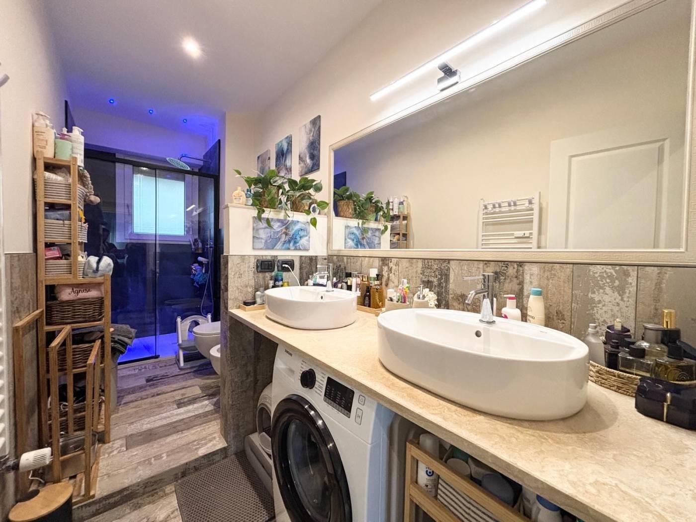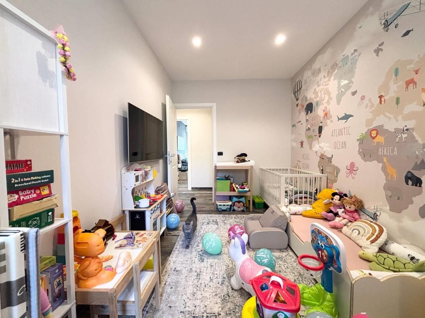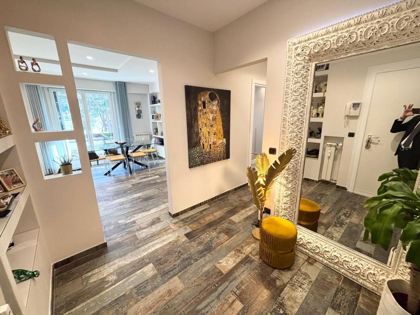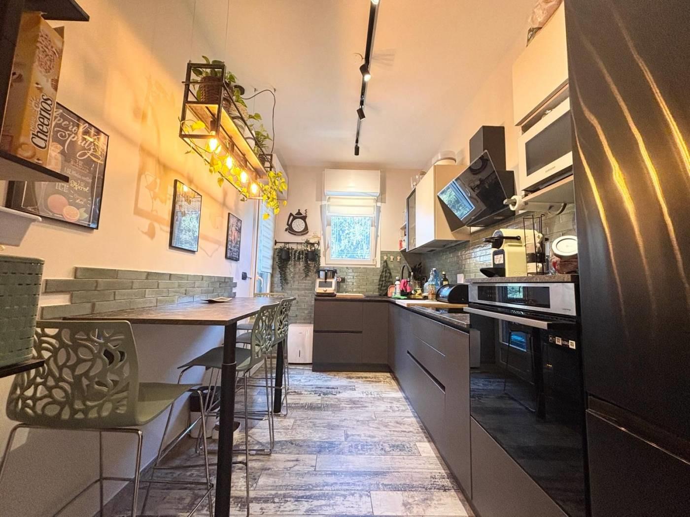 L'appartamento si trova in una posizione comoda, ben collegata a scuole, parchi e servizi essenziali, con facile accesso alle principali vie di comunicazione. La soluzione abitativa comprende un ampio salone, una cucina, due camere da letto, un bagno, un ripostiglio ed un balcone. Completano la proprietà una cantina ed un posto auto. L'immobile è stato completamente RISTRUTTURATO, con materiali di pregio e finiture di alta qualità, pavimentazione in gress porcellanato Sant'Agostino, infissi PVC doppio vetro con tapparelle elettriche e zanzariere, illuminazione con faretti al Led, caminetto elettrico che serve tutta la zona giorno, impianto di climatizzazione, impianto elettrico ed idrico rifatti, armadiature su misura e una cucina progettata con cura. La sua collocazione lo rende ideale per chi cerca una residenza in un contesto funzionale e vicino ai principali servizi, stabile recintato con giardino interno condominiale sempre ben curato e servizio di portineria.