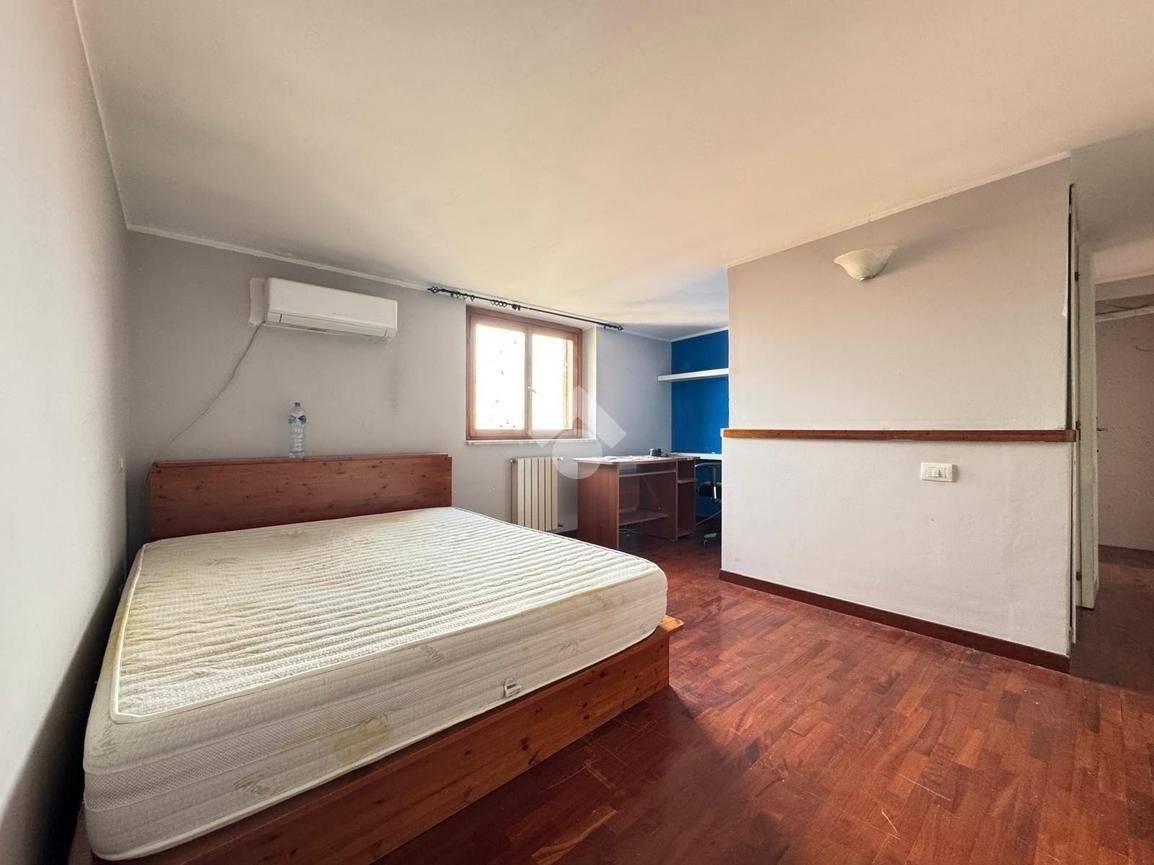 Al piano superiore, accatastato come soffitta ma privo di spiovenze e con un’altezza massima di 2,20 metri, si sviluppa una seconda camera dotata di angolo studio e un bagno finestrato con vasca, perfetto come zona privata o per ospiti.L’immobile è inoltre fornito di porta blindata, citofono, infissi in doppio vetro con scuri esterni e condizionatori su entrambi i livelli, garantendo comfort e sicurezza.