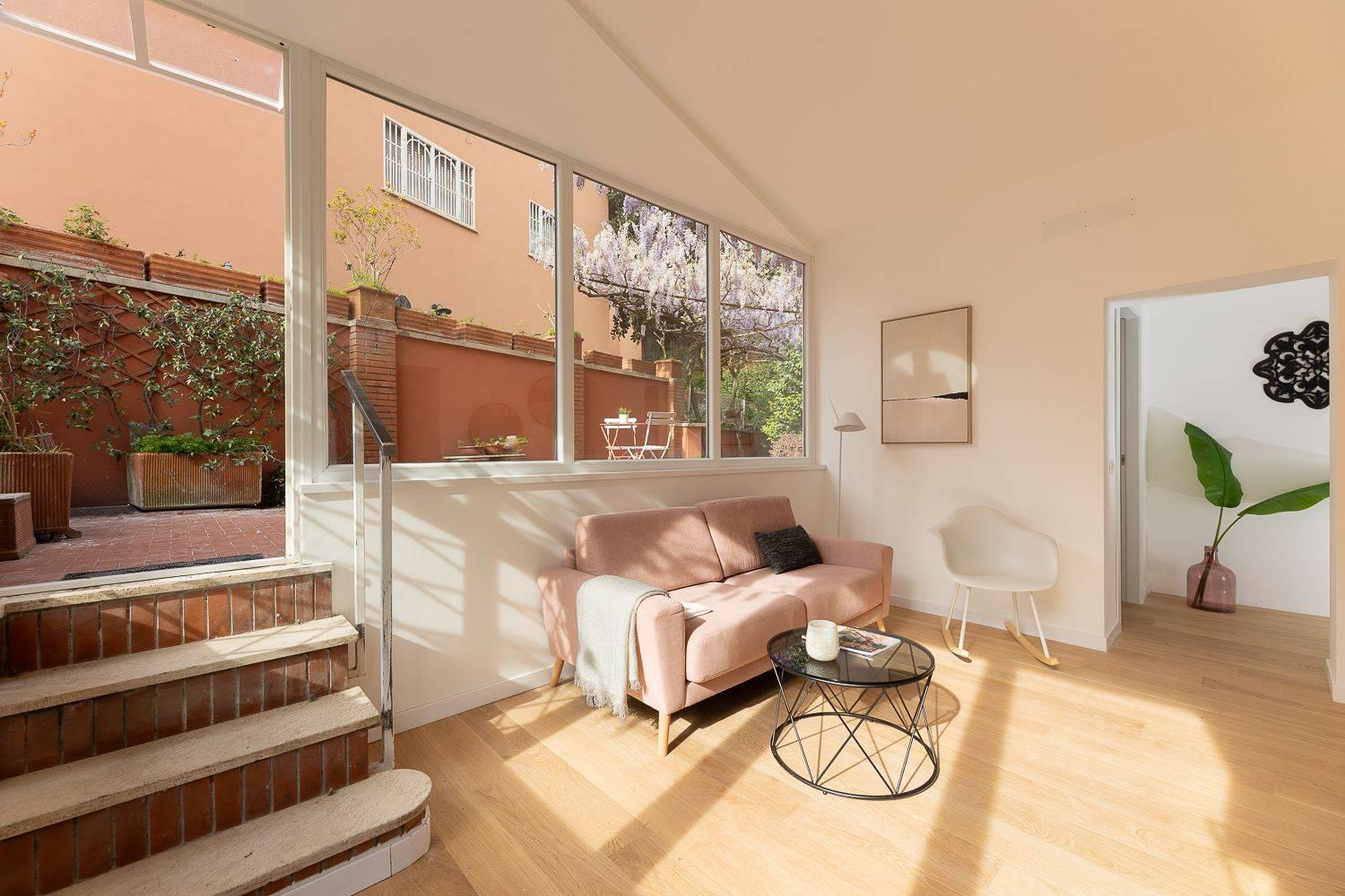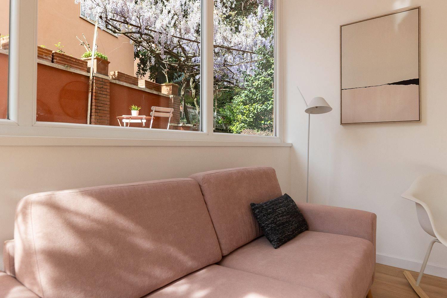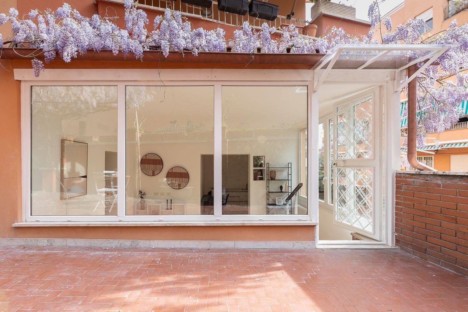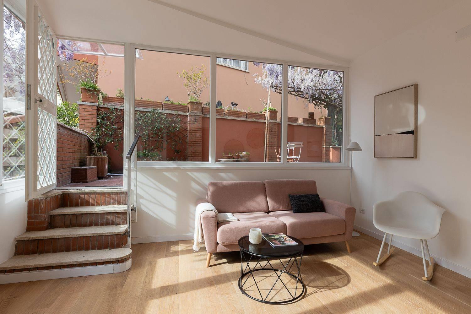 In condominio di tre palazzine ristrutturate esternamente e con servizio di portineria, proponiamo la vendita di un appartamento posto piano terra, pari al nuovo in pronta consegna. Questo trilocale, frutto di un progetto di riqualificazione di un immobile esistente, si estende su una superficie di 65 mq commerciali con esposizione a a sud/est ed è così composto: ampia zona living con cucina a vista, due camere, bagno e splendido giardino privato di 40 mq con ingresso indipendente.
