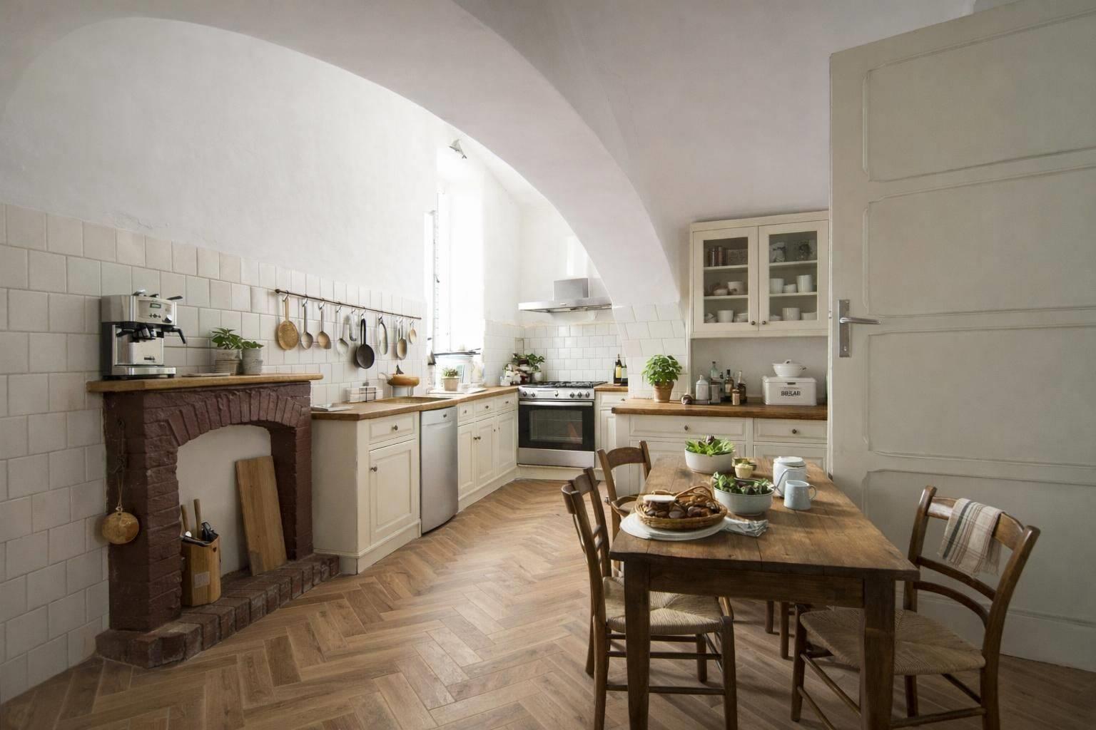 ampio salone, disimpegno, cucina abitabile con camino, camera matrimoniale, cameretta, bagno e ripostiglio.