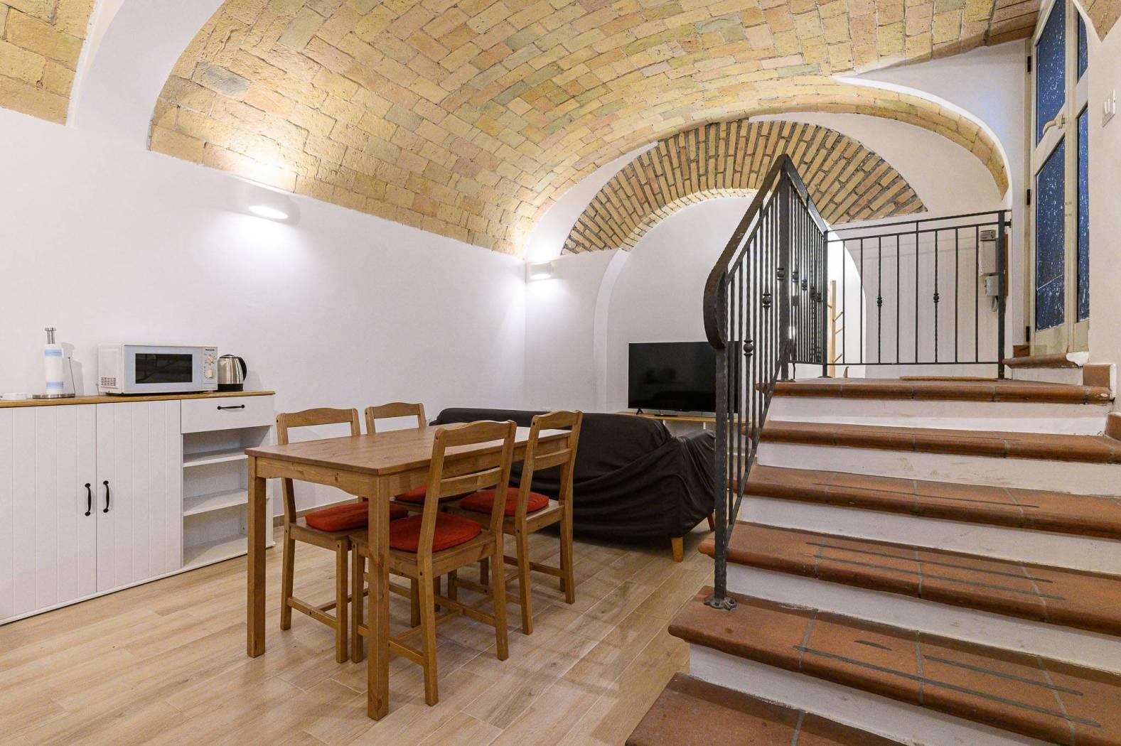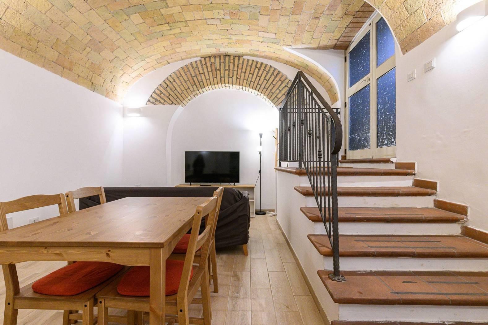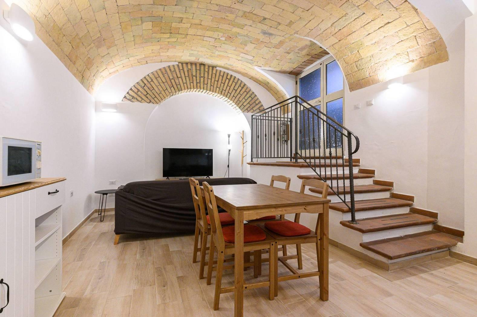 La soluzione si presenta in OTTIMO STATO interno e vanta soffitti a volta con caratteristici mattoncini.