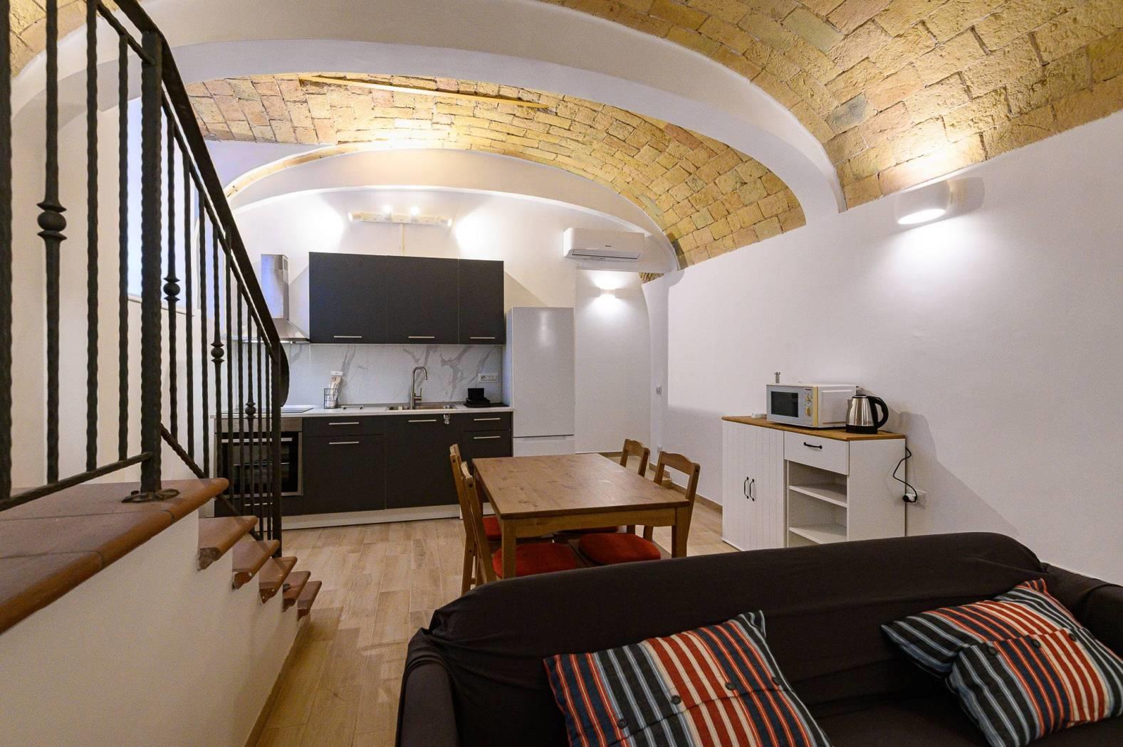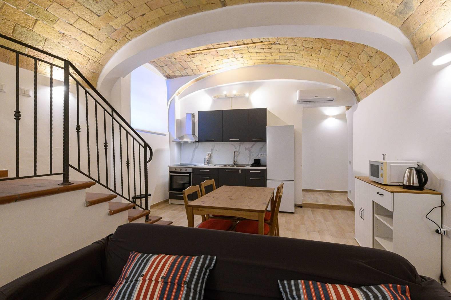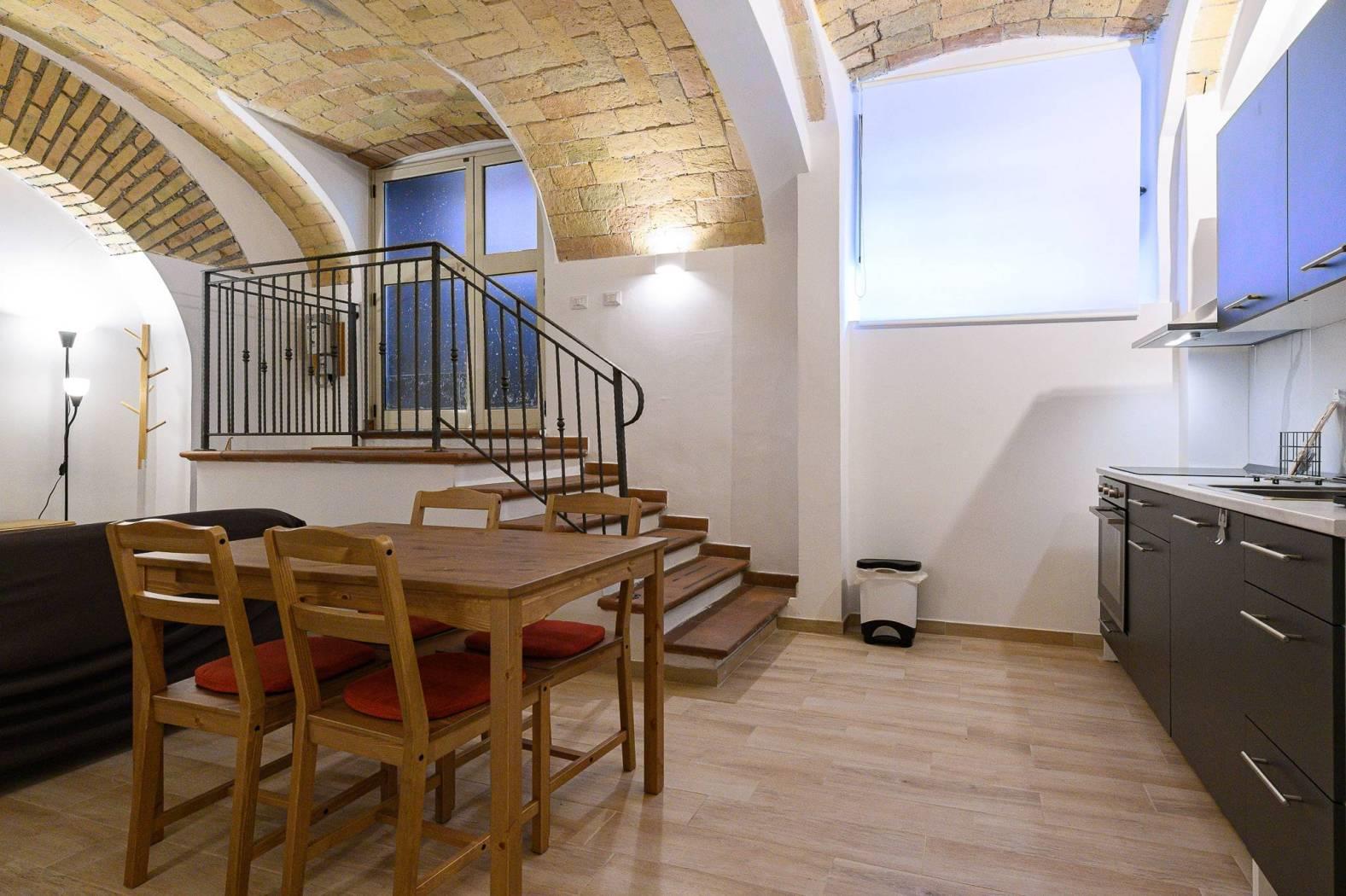 La soluzione si presenta in OTTIMO STATO interno e vanta soffitti a volta con caratteristici mattoncini.