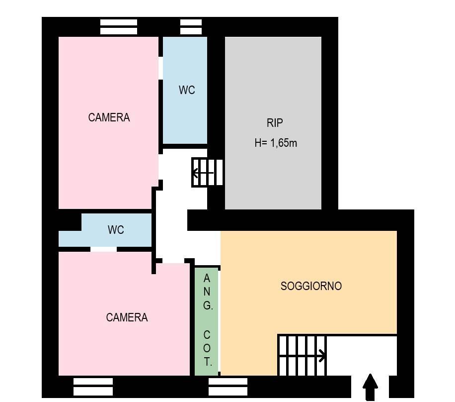 L'immobile è composto da: ingresso, soggiorno con angolo cottura, due comode camere da letto, doppi servizi e comodo ripostiglio.