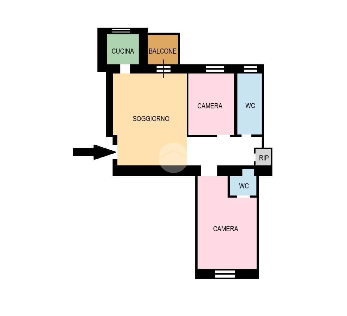 Composto da: ingresso, ampio soggiorno a vista con uscita su ESCLUSIVO BALCONE, cucinotto, camera da letto matrimoniale, cameretta, doppi servizi, ripostiglio; completa la proprietà una funzionale cantina.