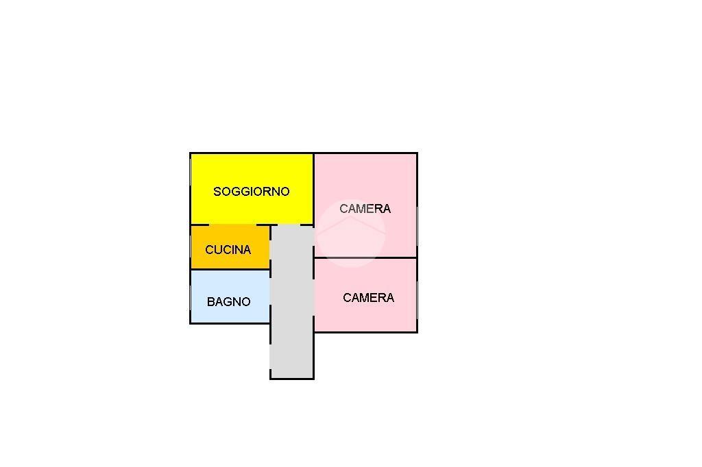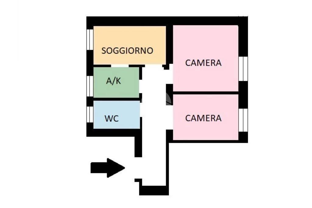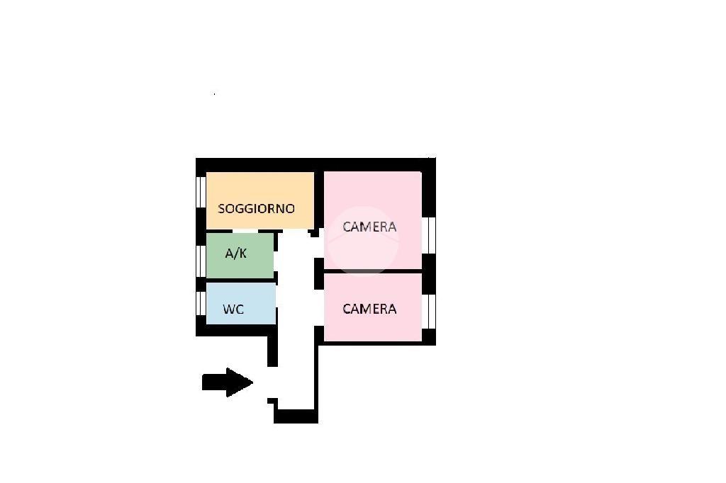 L'immobile è così composto: ingresso, soggiorno con cucinotto a vista, due camere da letto matrimioniali e servizio finestrato.