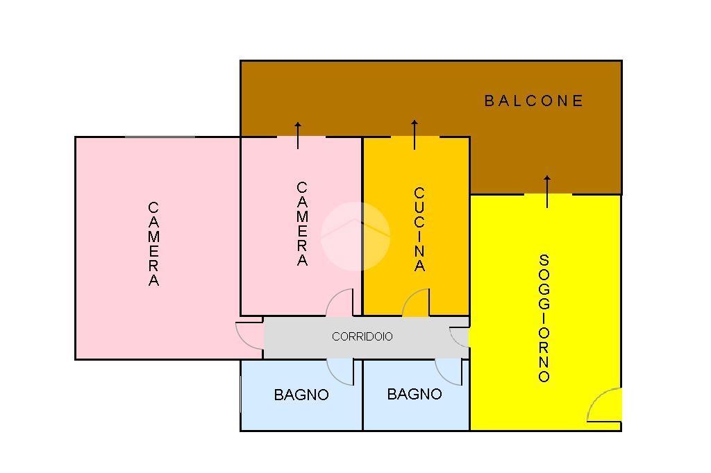L'immobile, distribuito su un unico livello, si compone da salone, cucina separata, camera matrimoniale, cameretta e due bagni di cui uno con finestra e vasca ed uno cieco con box doccia.
