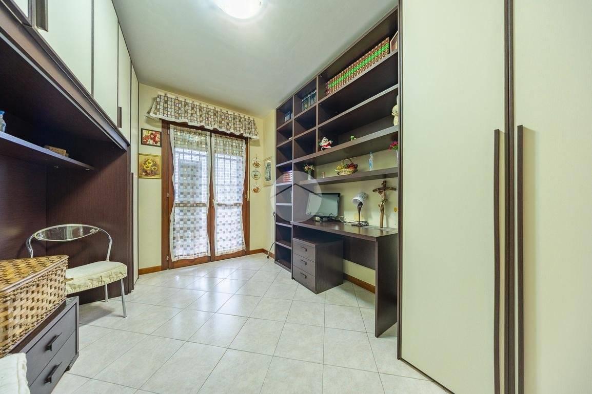 Completano la soluzione un posto auto scoperto di proprietà, una cantina posta al piano seminterrato ed un balcone abitabile accessibile da salone, cucina, cameretta e camera matrimoniale.