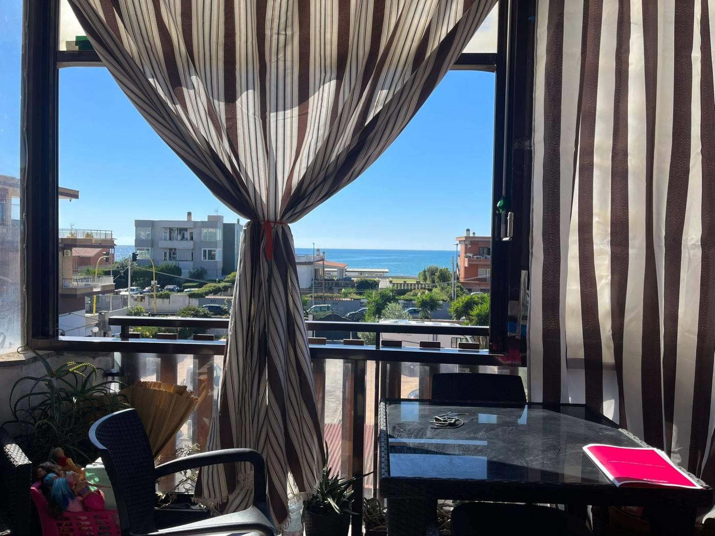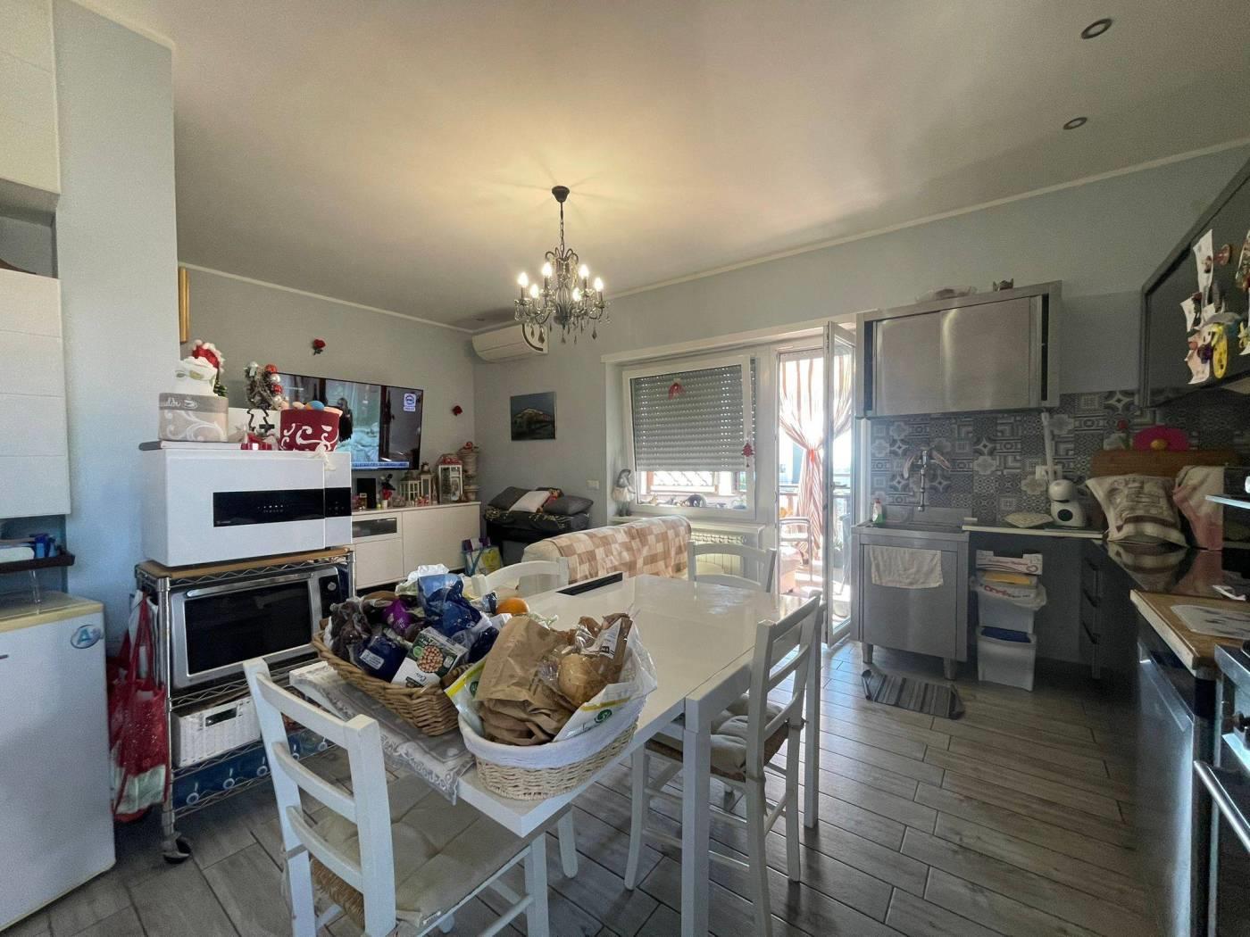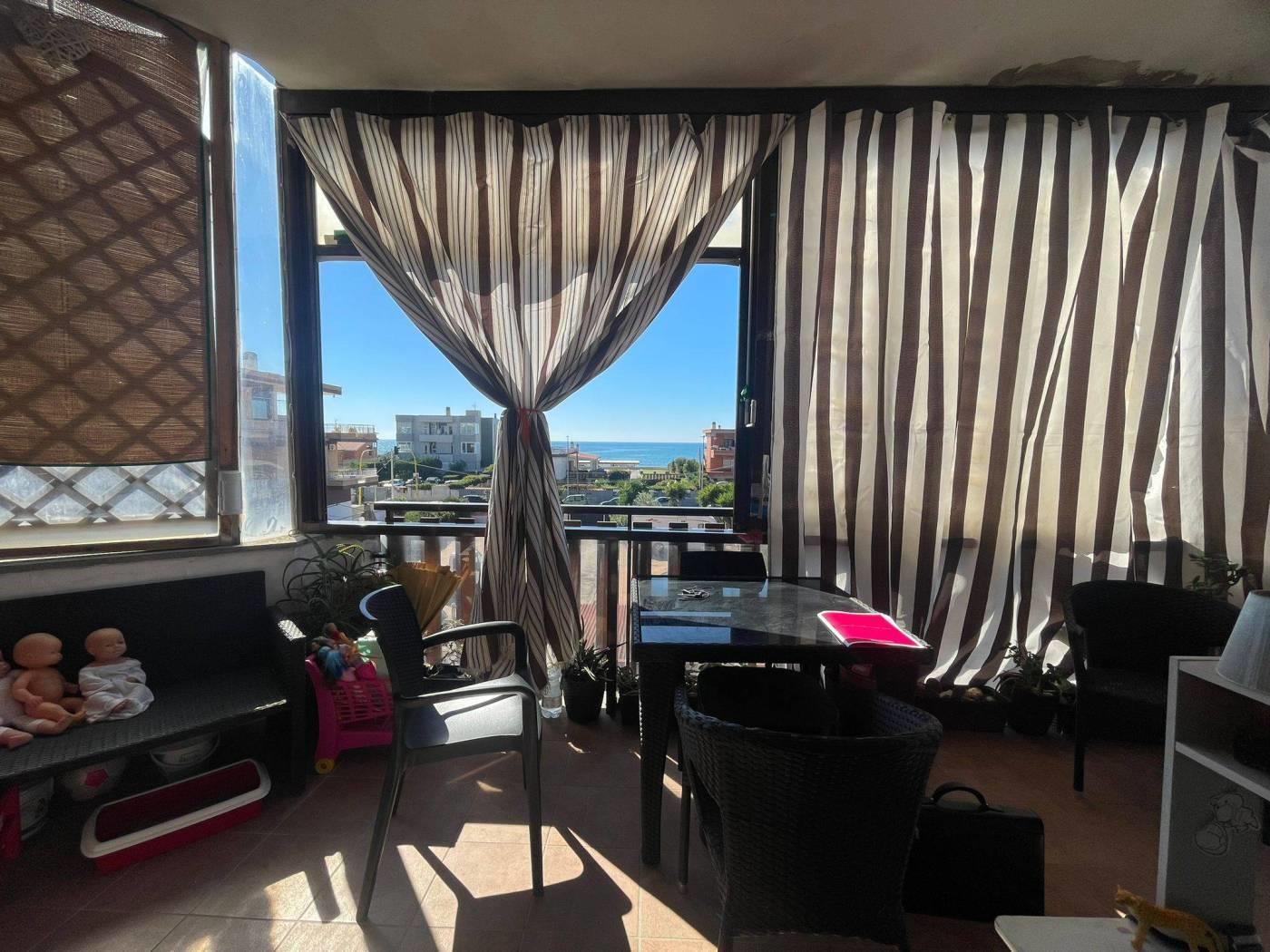 In vendita proponiamo un primo piano completamente ristrutturato con finiture di pregio e una magnifica vista sul mare. L'appartamento è composto da ingresso, ampio salone con angolo cottura, due camere da letto, servizio finestrato, balcone perimetrale e un ampio terrazzo abitabile. Dotato di impianto di riscaldamento autonomo, infissi in PVC con vetro doppio, grate di sicurezza, condizionatori con pompa di calore, serrande elettriche, sistema di allarme e videocitofono. Completa la proprietà un posto auto interno.