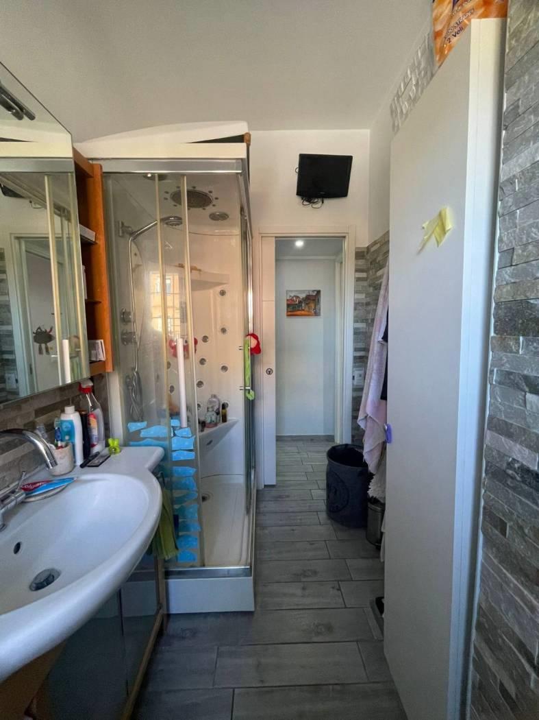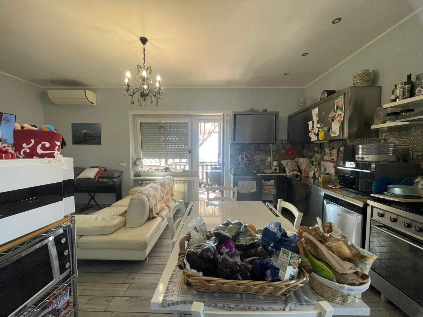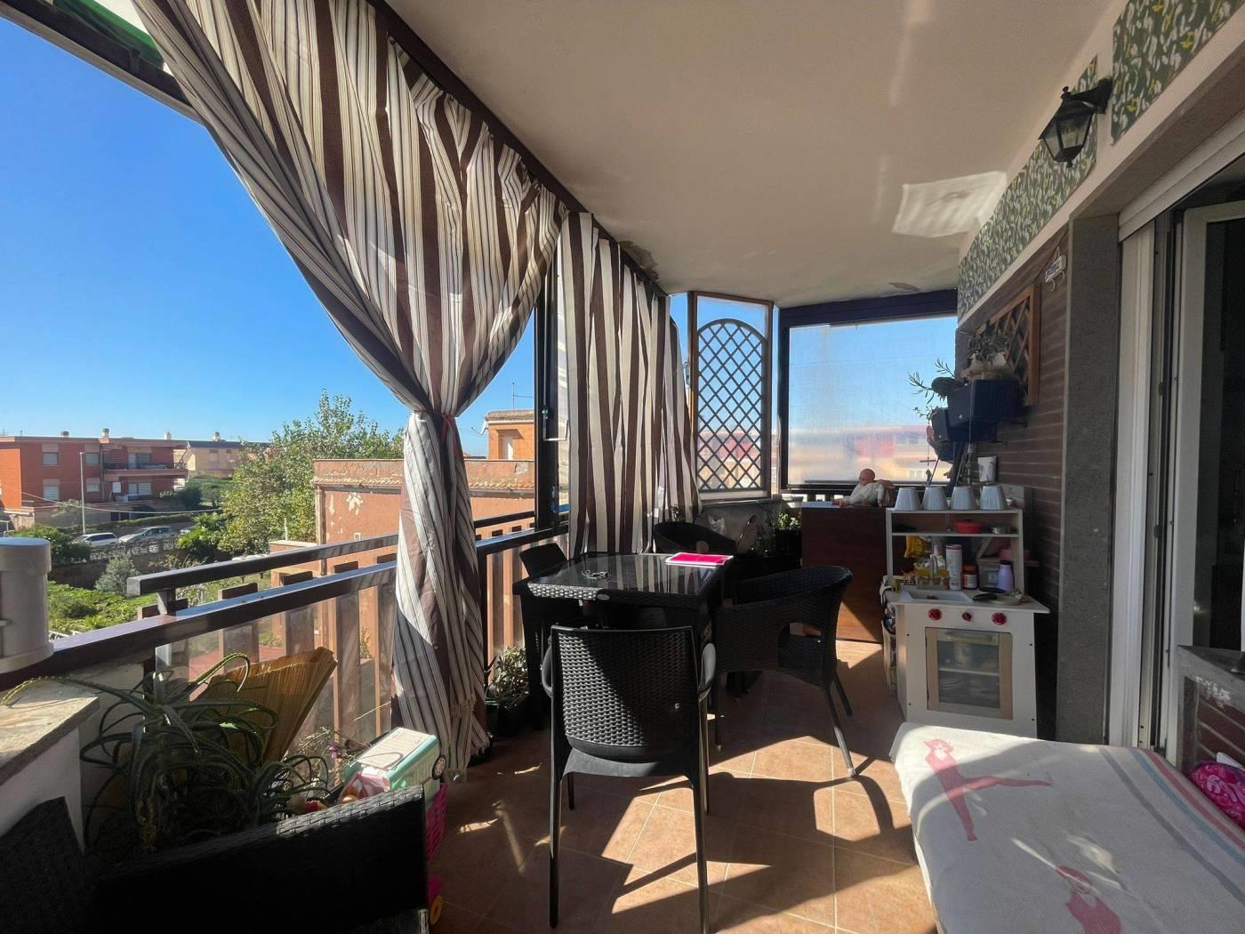 In vendita proponiamo un primo piano completamente ristrutturato con finiture di pregio e una magnifica vista sul mare. L'appartamento è composto da ingresso, ampio salone con angolo cottura, due camere da letto, servizio finestrato, balcone perimetrale e un ampio terrazzo abitabile. Dotato di impianto di riscaldamento autonomo, infissi in PVC con vetro doppio, grate di sicurezza, condizionatori con pompa di calore, serrande elettriche, sistema di allarme e videocitofono. Completa la proprietà un posto auto interno.
