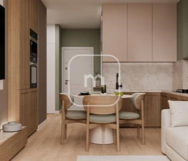 Soggiorno con cucina a vista, 2 camere e bagno.