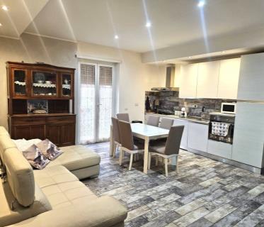 Ingresso/corridoio, sala da pranzo, cucina abitabile, due camere da letto, bagno con finestra e giardino pavimentato angolare di 140mq ca, oltre a giardino a terra di circa 50mq.
