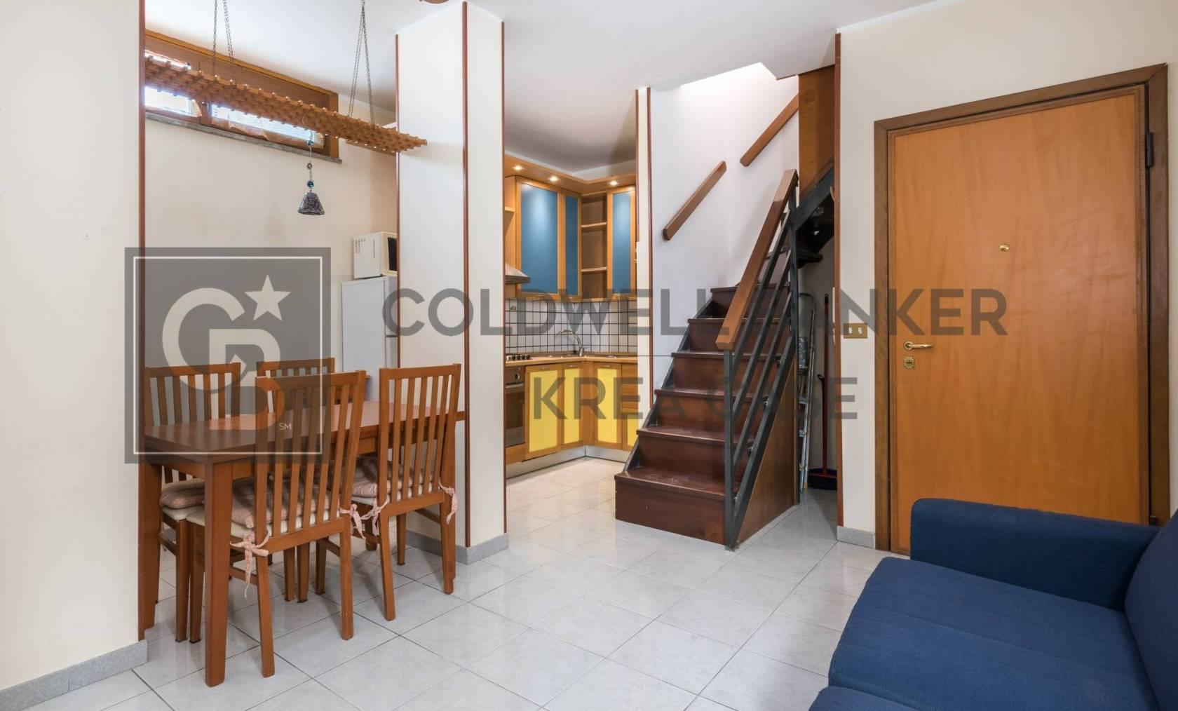 La proprietà è ubicata al secondo ed ultimo piano, gode di una ottima esposizione e luminosità ed è inserito in una palazzina in tinta in una posizione strategica, ben servita ma tranquilla e riservata. Gli spazi interni, raccolti ma ben distribuiti, presentano al secondo piano un soggiorno con cucina a vista, la scala interna collega la zona giorno al piano terzo dove si presenta la zone notte che si compone di due camere tra cui la matrimoniale, un servizio ed un terrazzino.