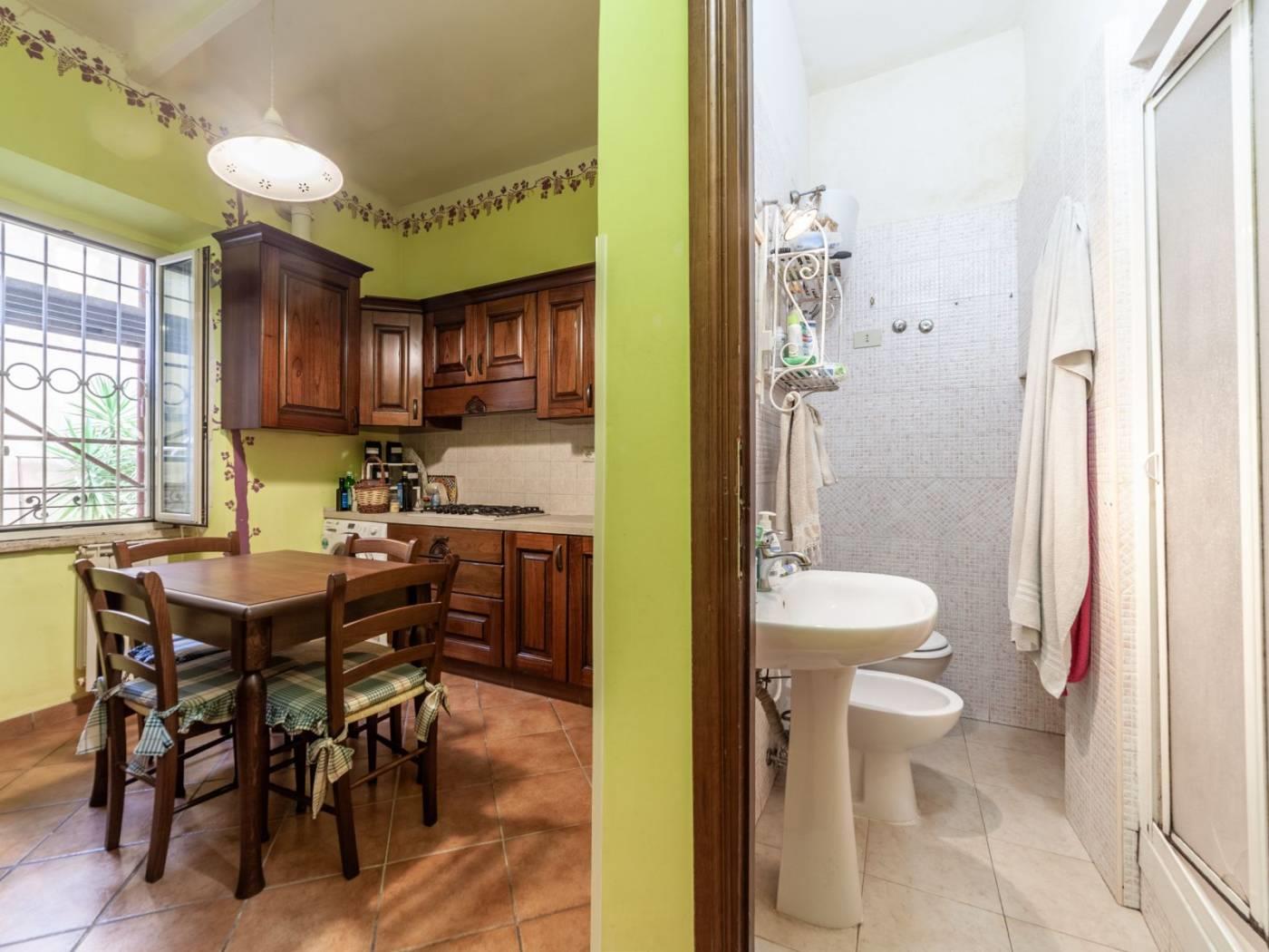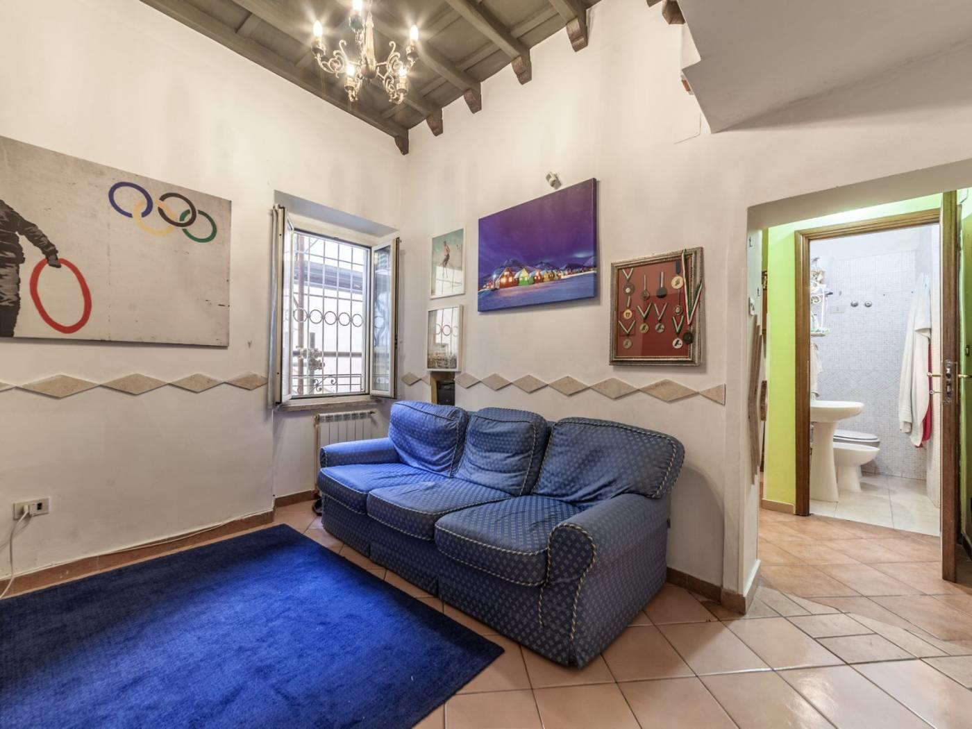 Salendo al primo piano di un edificio storico, troviamo un appartamento di circa 65 metri, caratterizzato da una disposizione classica e funzionale: soggiorno accogliente, cucina abitabile, camera da letto matrimoniale e una cameretta ricavata sapientemente da un ex ripostiglio — perfetta come spazio aggiuntivo per ospiti o per chi desidera una piccola zona studio.