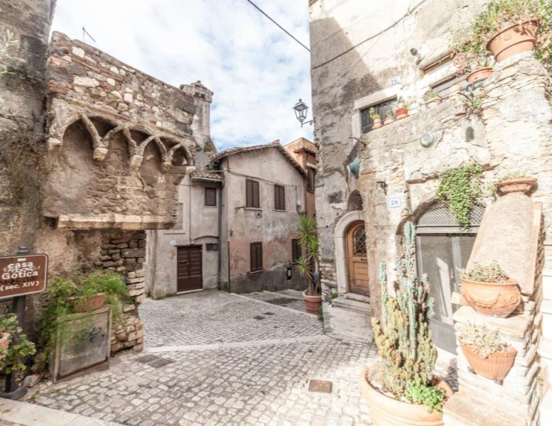 Proprio su questa via sorge la famosa Casa Gotica, raro esempio di architettura medievale risalente al XIV secolo. L’edificio, con la sua facciata in peperino e le eleganti bifore ogivali, rappresenta una delle testimonianze più antiche dell’arte gotica civile nel Lazio.