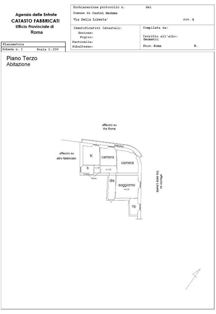 Via della Libertà, appartamento posto al terzo e ultimo piano, composto da ingresso, corridoio, sala, due camere, cucina, bagno, ampio ripostiglio finestrato, balcone.