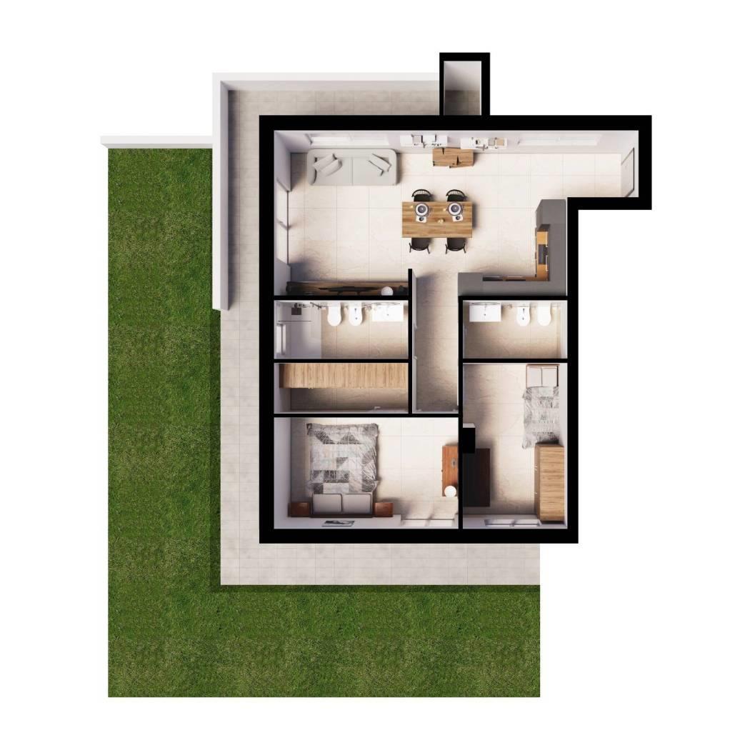 La Barba Immobiliare e MV Servizi Immobiliari presentano una Nuova Opportunità al Centro di Mentana! Siamo entusiasti di presentarvi un progetto esclusivo di nuova costruzione, pensato per offrire il massimo del comfort e dell’efficienza energetica. A due passi dal cuore pulsante di Mentana, nasce un piccolo condominio di ultima generazione, con 7 unità residenziali di diversa metratura (bilocali, trilocali e quadrilocali) in classe energetica A++++, per garantire il miglior risparmio e benessere. L'immobile che vi presentiamo è un appartamento al piano terra arricchito da un giardino a livello di circa 160 mq, un angolo perfetto per godersi il verde e la tranquillità . Internamente l'appartamento è composto salone con angolo cottura ed affaccio sul giardino, camera matrimoniale con cabina armadio, cameretta e doppi servizi. Le rifiniture sono di elevata qualità con rivestimenti in gres porcellanato, infissi in alluminio in vetrocamera e dotazioni superiori alla media. Riscaldamento a pavimento con pompa di calore ed impianto di raffreddamento canalizzato. 2kW di pannello fotovoltaico per ciascuna unità. Immobile servito da ascensore al piano in tutti i livelli compreso il piano garage. Nel prezzo dell'appartamento è compreso un posto auto scoperto all'interno del cortile condominiale con la possibilità di aggiungere cantine, posti auto coperti e box auto doppi. Offerta speciale fino alla fine di febbraio 2025: usufruisci del 10% di sconto sul prezzo dell'appartamento! Non lasciarti sfuggire questa opportunità unica di vivere in una casa moderna e ben posizionata, con tutte le comodità a portata di mano. Usufruisci della possibilità di poter personalizzare le rifiniture del tuo appartamento. Contattaci subito per maggiori informazioni o vieni a trovarci direttamente per scoprire tutte le unità disponibili e il progetto completo. LE DIMENSIONI INDICATE SI INTENDONO ESPRESSE IN MQ COMMERCIALI SE NON DIVERSAMENTE SPECIFICATO Le immagini inserite nell’inserzione sono a solo scopo dimostrativo/commerciale e non costituiscono elemento contrattuale