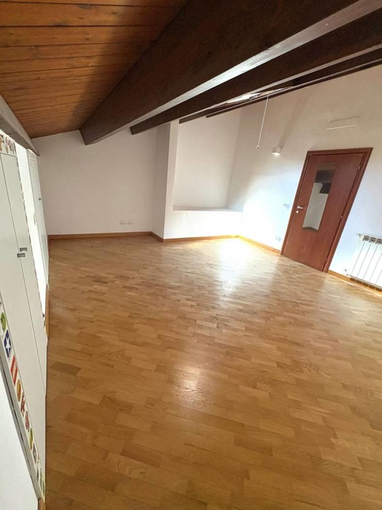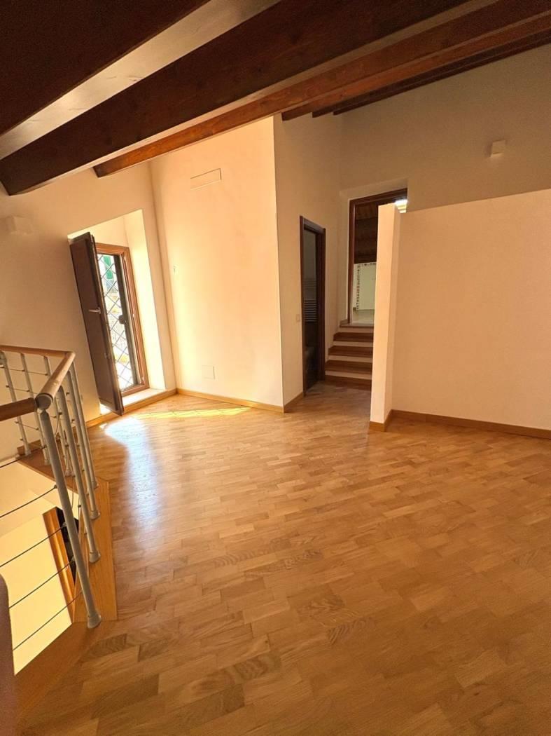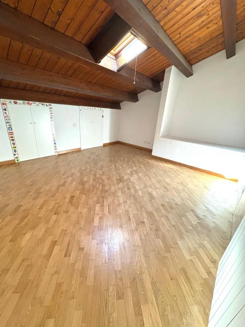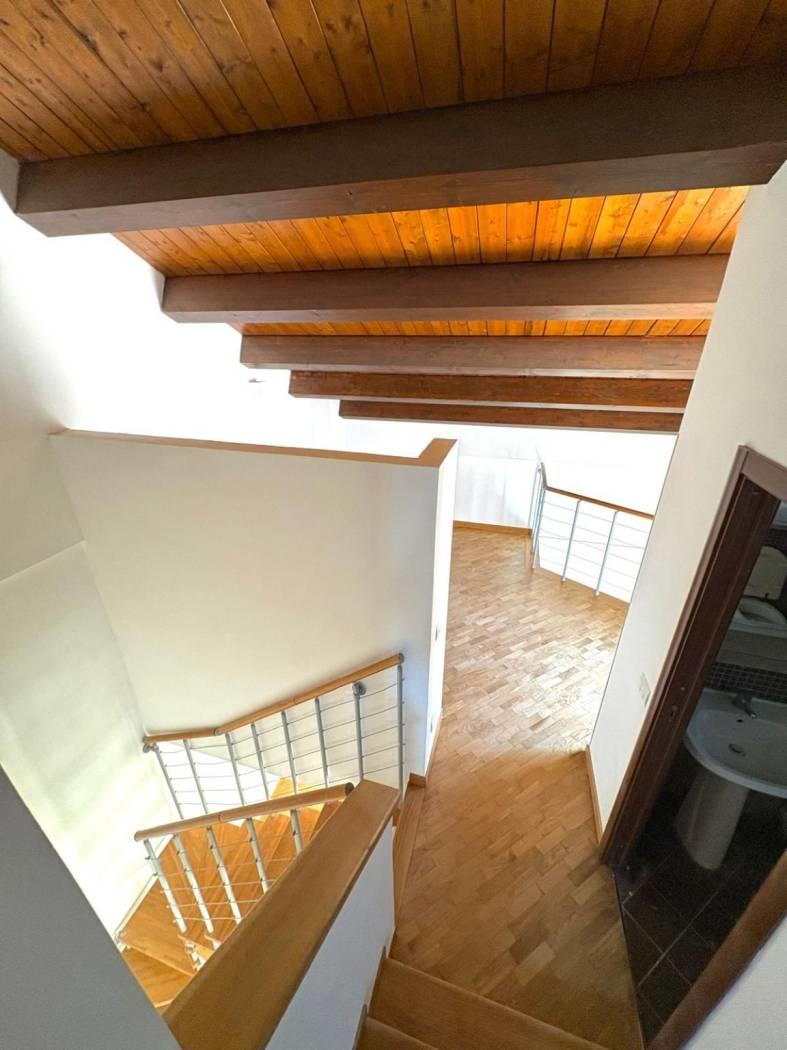 Varcata la doppia porta d ingresso si viene accolti da un ampio ed elegante salone dove trascorrere del piacevole tempo in famiglia, da qui si accede nel comodo cucinotto dotato di un ampia luminosa finestratura da dove si accede ad un comodo balcone. Nel piano superiore si accede tramite un elegante moderna scala che ci trasporta nel rifugio di tranquillità della casa: La camera da letto resa ancor più accogliente dal tetto in castagno a vista e un caldo parquet. Al piano troviamo anche un bagno completo finestrato.