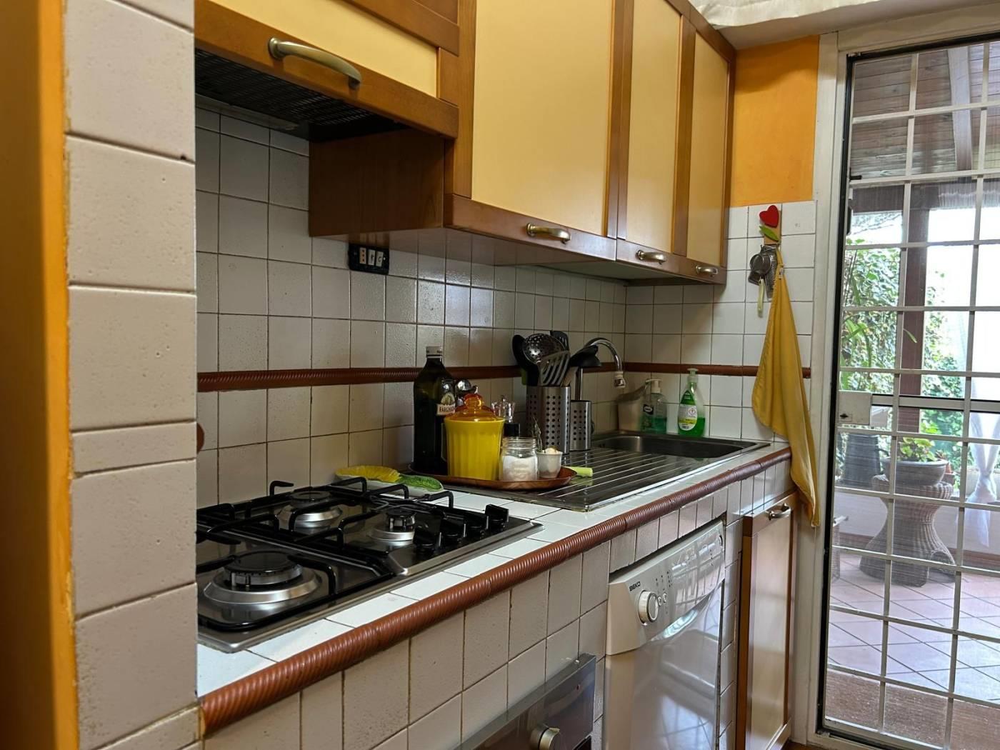 L'appartamento misura circa 100 mq commerciali, oltre uno splendido giardino privato di circa 400 mq, finemente attrezzato e piantumato.