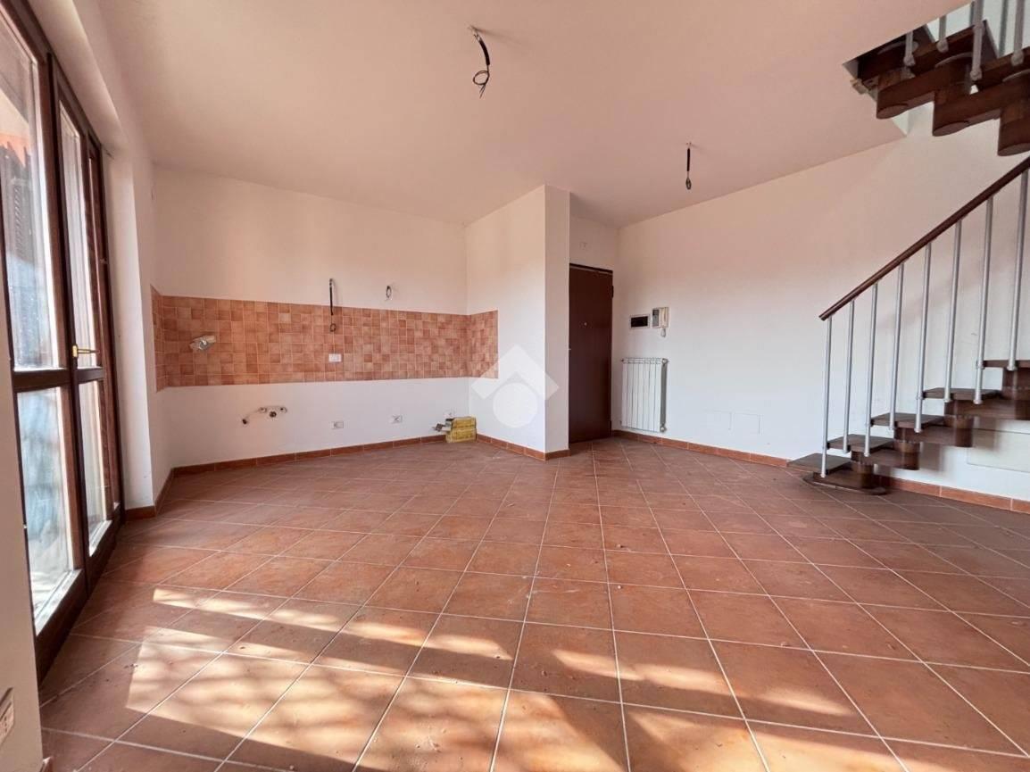 Cave. Via Madonna del Campo. Proponiamo in vendita appartamento di recente costruzione composto da: soggiorno con angolo cottura, camera matrimoniale, cameretta, bagno, ampio terrazzo, balcone e mansarda con possibilità di creare un ulteriore camera e un bagno. Completa la proprietà garage.