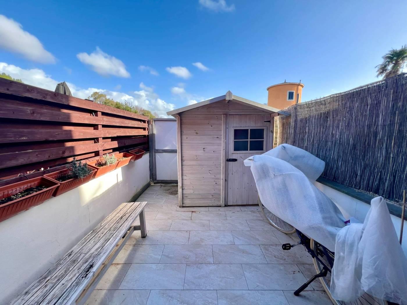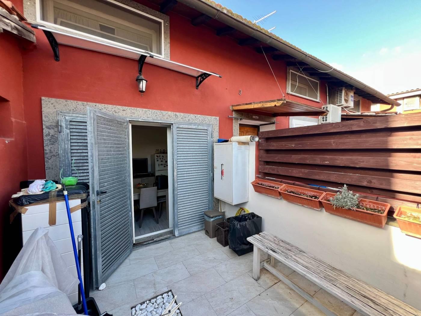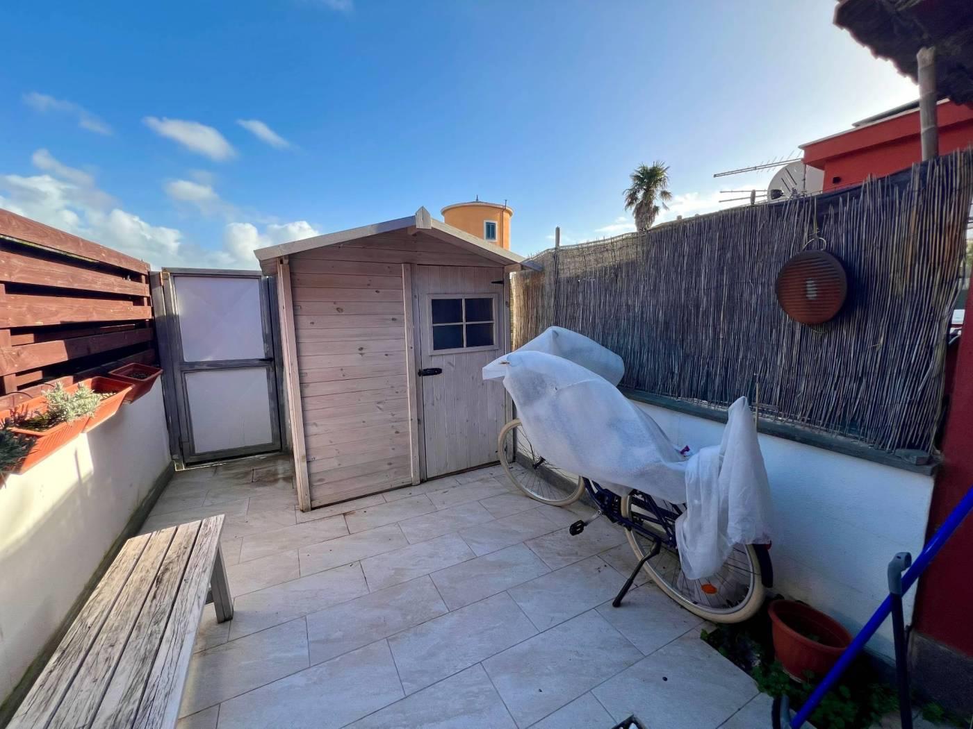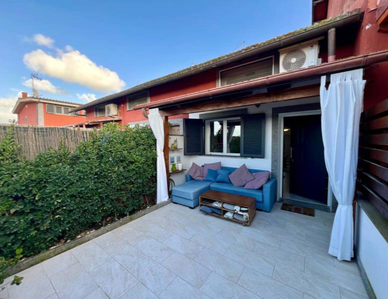 Maccarese nelle immediate vicinanze di Passoscuro e Fregene a circa 2km dalla stazione FS di Palidoro e dal mare proponiamo la vendita di un appartamento in casale bilivelli recentemente ristrutturato. CONTATTACI PER VISITARE L'IMMOBILE. Attraverso un cancello pedonale veniamo accolti da un delizioso giardino mattonato con piccolo portico ottimo per pranzi o cene all'aperto. Entrando nell'abitazione troviamo il salone con scala a vista per accedere al piano superiore, proseguendo piccolo disimpegno che collega la cucina abitabile, con uscita sul giardino retro con un secondo ingresso indipendente, il servizio ed un ripostiglio. Il piano superiore è composto da disimpegno che collega la camera da letto con cabina armadio, la cameretta, il servizio con vasca e lucernario. L'immobile si presenta in ottime condizioni essendo stato ristrutturato recentemente e dispone di portone blindato all'ingresso, infissi in pvc doppio vetro, persiane, riscaldamento autonomo, aria condizionata. Infine possiamo usufruire di un posto auto condominiale esterno. CONTATTACI PER VISITARE L'IMMOBILE.