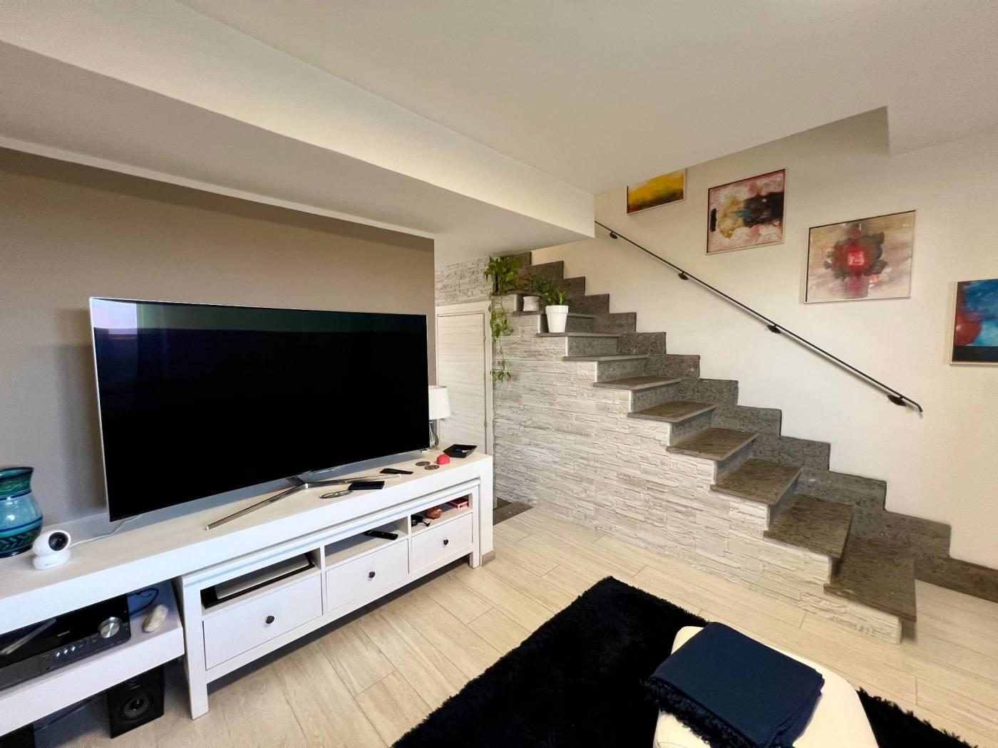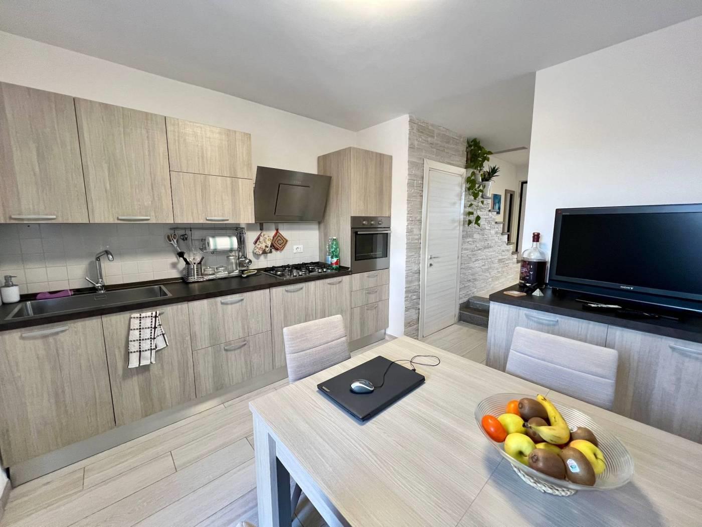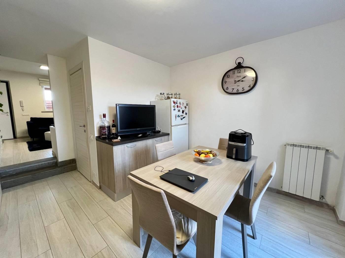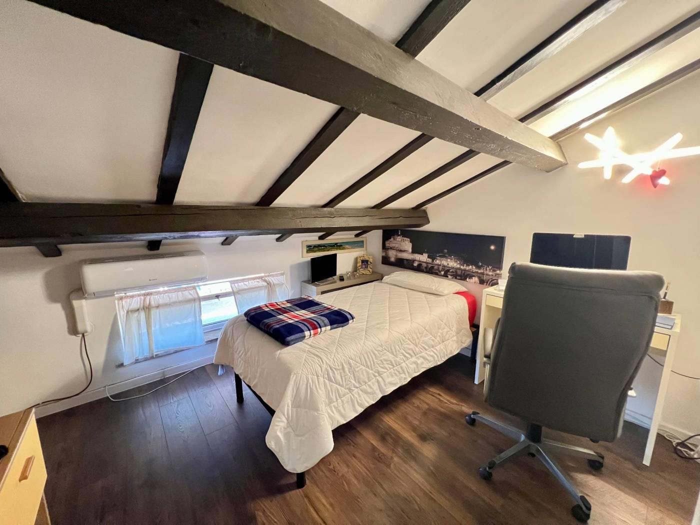 Maccarese nelle immediate vicinanze di Passoscuro e Fregene a circa 2km dalla stazione FS di Palidoro e dal mare proponiamo la vendita di un appartamento in casale bilivelli recentemente ristrutturato. CONTATTACI PER VISITARE L'IMMOBILE. Attraverso un cancello pedonale veniamo accolti da un delizioso giardino mattonato con piccolo portico ottimo per pranzi o cene all'aperto. Entrando nell'abitazione troviamo il salone con scala a vista per accedere al piano superiore, proseguendo piccolo disimpegno che collega la cucina abitabile, con uscita sul giardino retro con un secondo ingresso indipendente, il servizio ed un ripostiglio. Il piano superiore è composto da disimpegno che collega la camera da letto con cabina armadio, la cameretta, il servizio con vasca e lucernario. L'immobile si presenta in ottime condizioni essendo stato ristrutturato recentemente e dispone di portone blindato all'ingresso, infissi in pvc doppio vetro, persiane, riscaldamento autonomo, aria condizionata. Infine possiamo usufruire di un posto auto condominiale esterno. CONTATTACI PER VISITARE L'IMMOBILE.