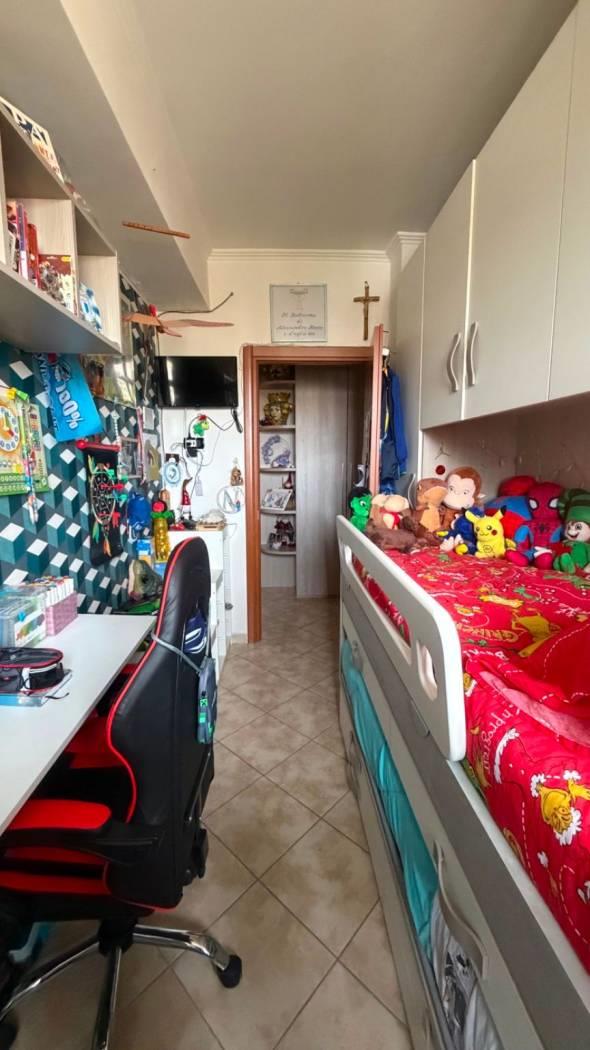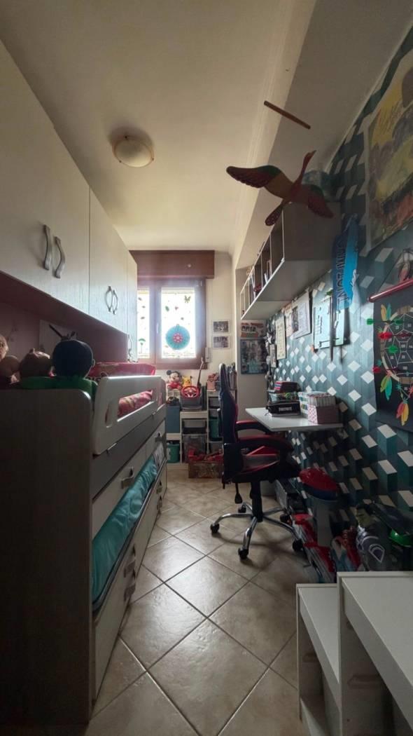 L'immobile risulta così composto: piccolo ingresso con armadio a muro, soggiorno, cucina con accesso ad un balconcino di servizio, corridoio, camera, cameretta e bagno.