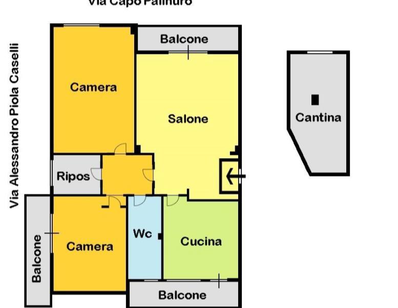 Via Alessandro Piola Caselli/ via Capo Palinuro Appartamento libero in buono stato composto da ampio soggiorno 2 camere cucina bagno ampio ripostiglio con finestra tre balconi ad angolo oltre un ampio locale cantina e un posto auto condominiale .
