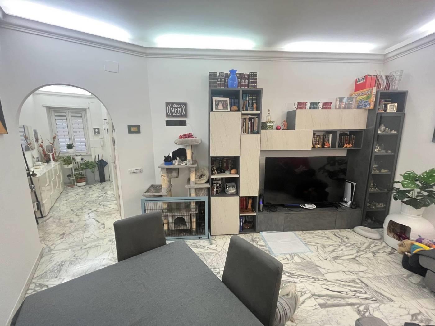 Si propone la vendita di un bellissimo appartamento tenuto in buone condizioni manutentive (ristrutturata nel 2021). L'immobile misura circa 88 mq ed è composto da: ingresso, salone, cucina in muratura, servizio, possibilità secondo servizio, due camere da letto, studio, ripostiglio, terrazzo, posto auto, cantina.