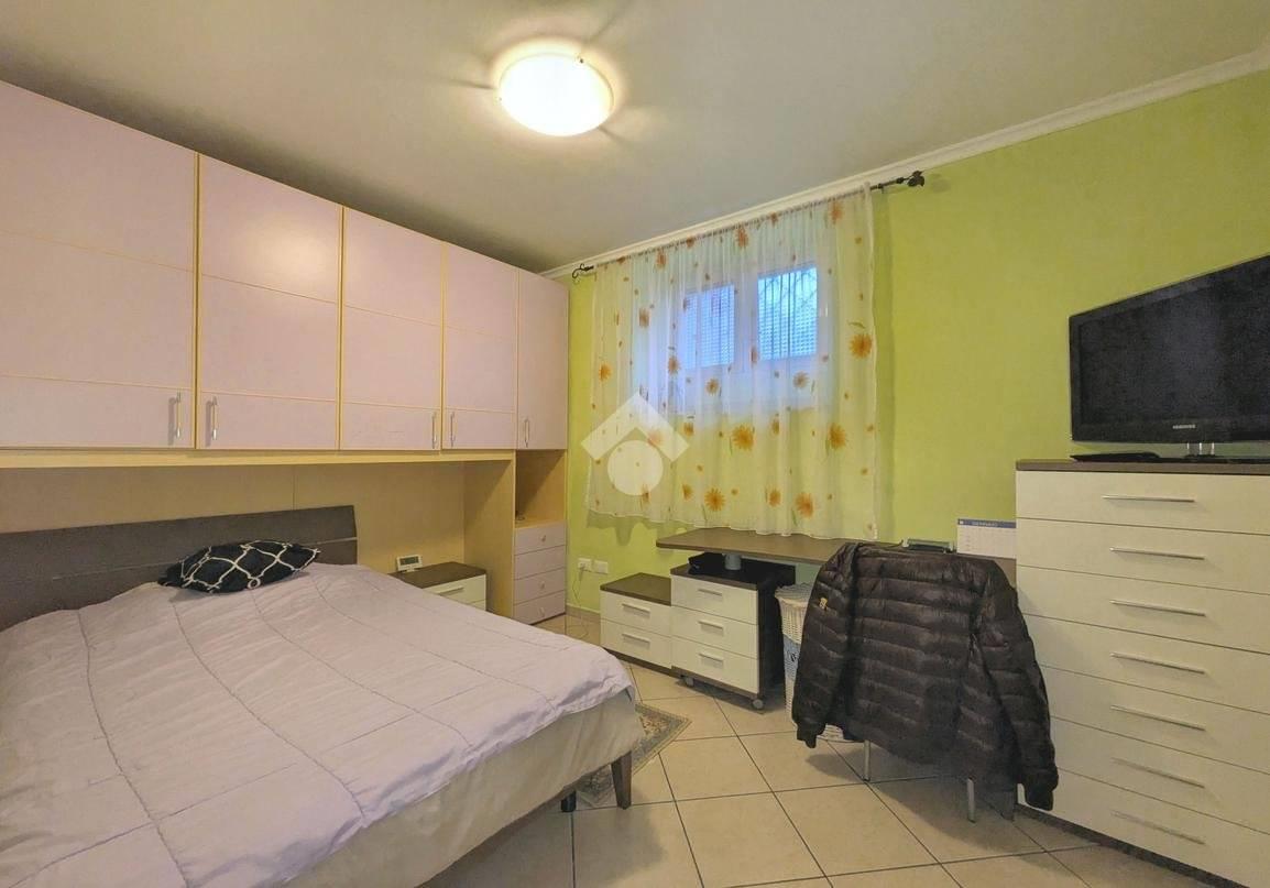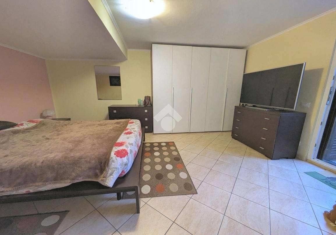 Dalla camera matrimoniale, grazie a una porta finestra, si accede a una corte mattonata, uno spazio esterno riservato, perfetto come area di sfogo.