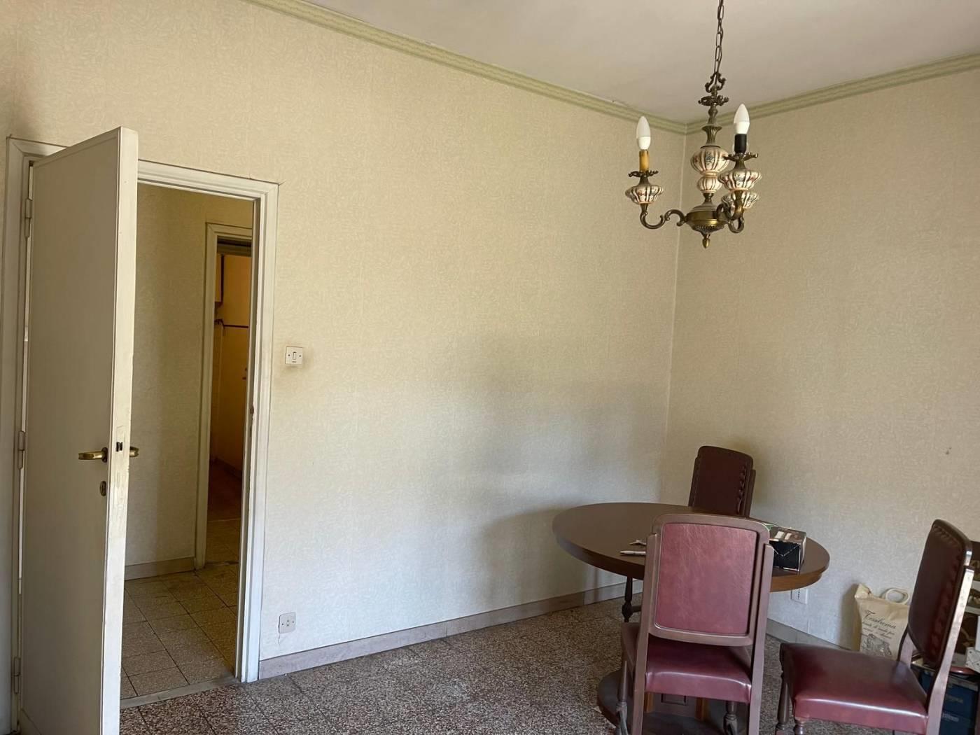 La proprietà dispone di tre balconi: uno a servizio del soggiorno, uno della cucina e un terzo balcone, più ampio, con accesso da entrambe le camere. L'immobile è da ristrutturare, le inferriate sono di recente installazione. Riscaldamento centralizzato con contabilizzatori.