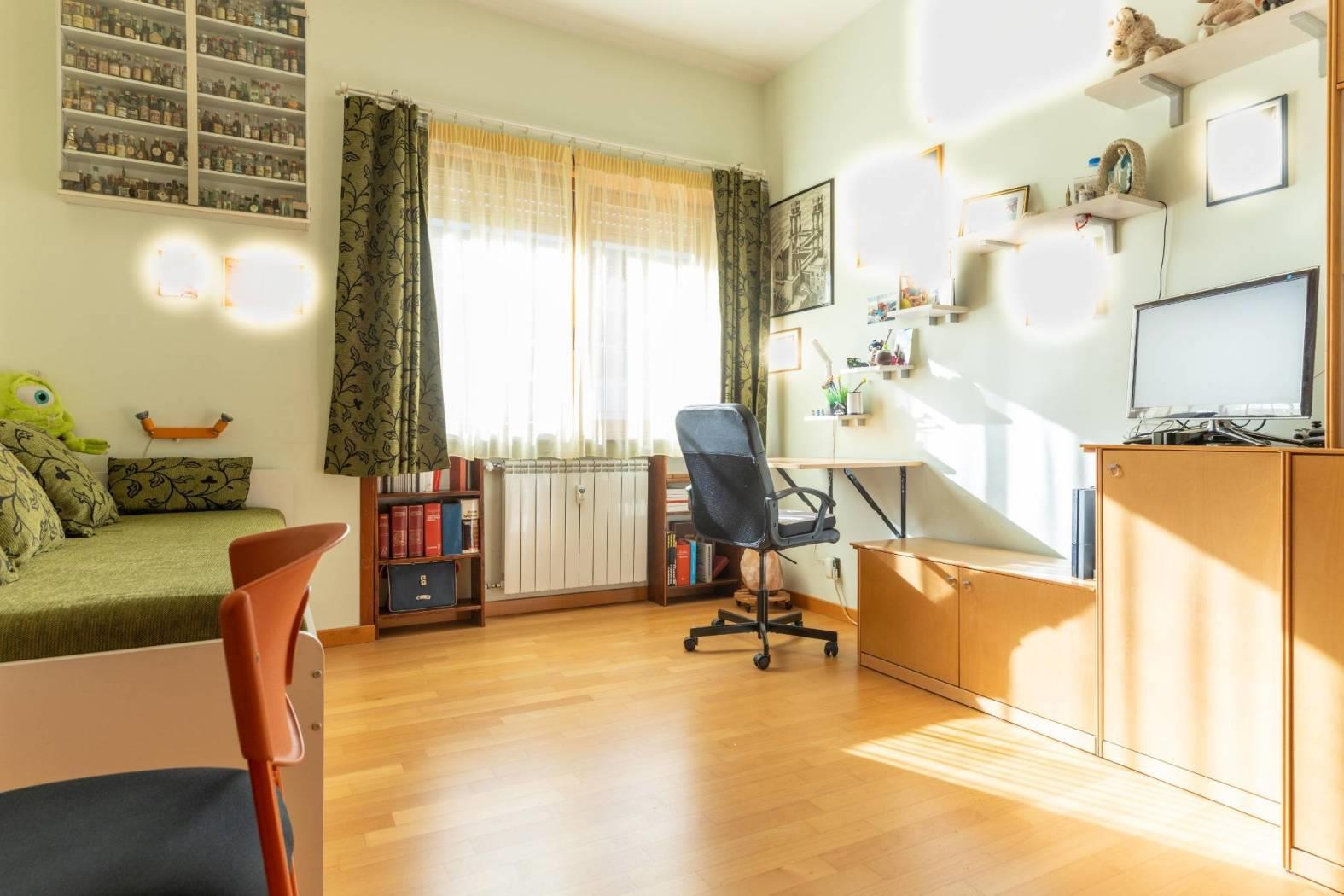 L’immobile si compone all’interno di uno bellissimo luminoso soggiorno doppio, attraverso il quale si accede ad un agevole e curato terrazzo, da dove si può ammirare la splendida vista sul rinomato parco sottostante, un’enorme ben tenuta cucina abitabile, un comodo ripostiglio, un disimpegno, una funzionale e grande camera matrimoniale, ulteriore spaziosa camera da letto, un pratico bagno finestrato con doccia, un efficiente studio con bagno all’interno.
