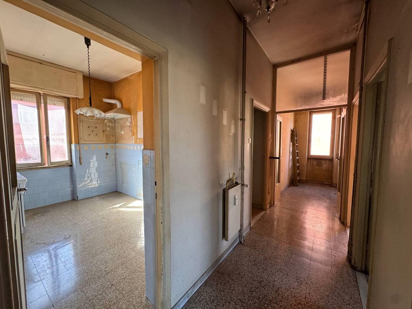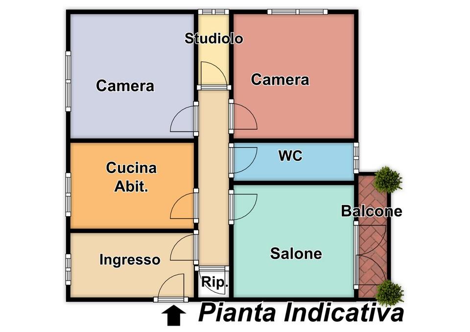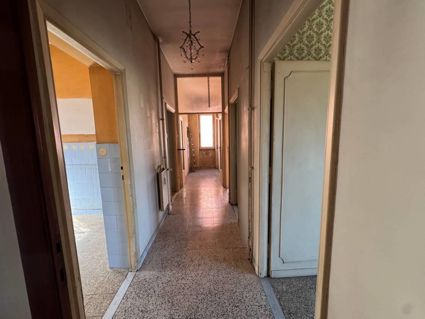 Ampio ingresso, corridoio, salone con accesso al balcone, due grandi camere da letto, uno studiolo, grande cucina veramente abitabile quadrata, bagno e ripostiglio.