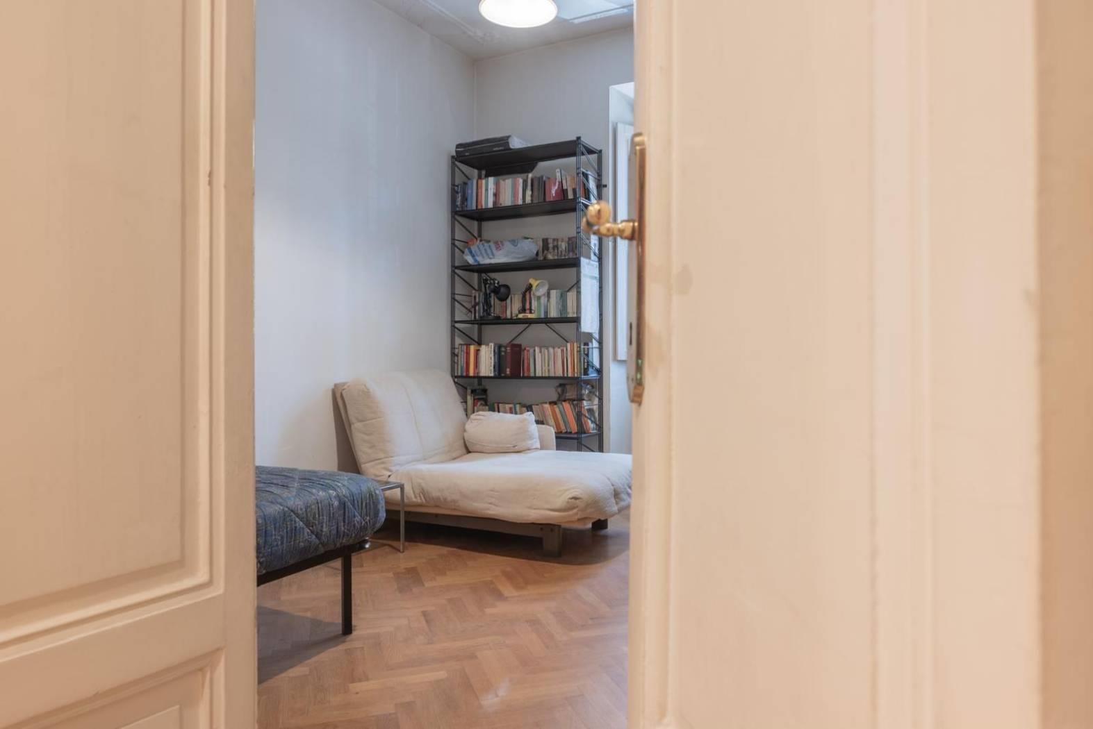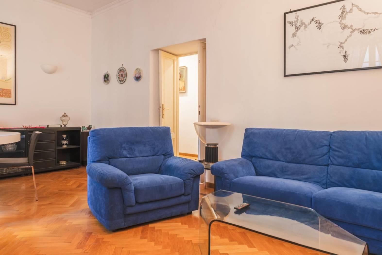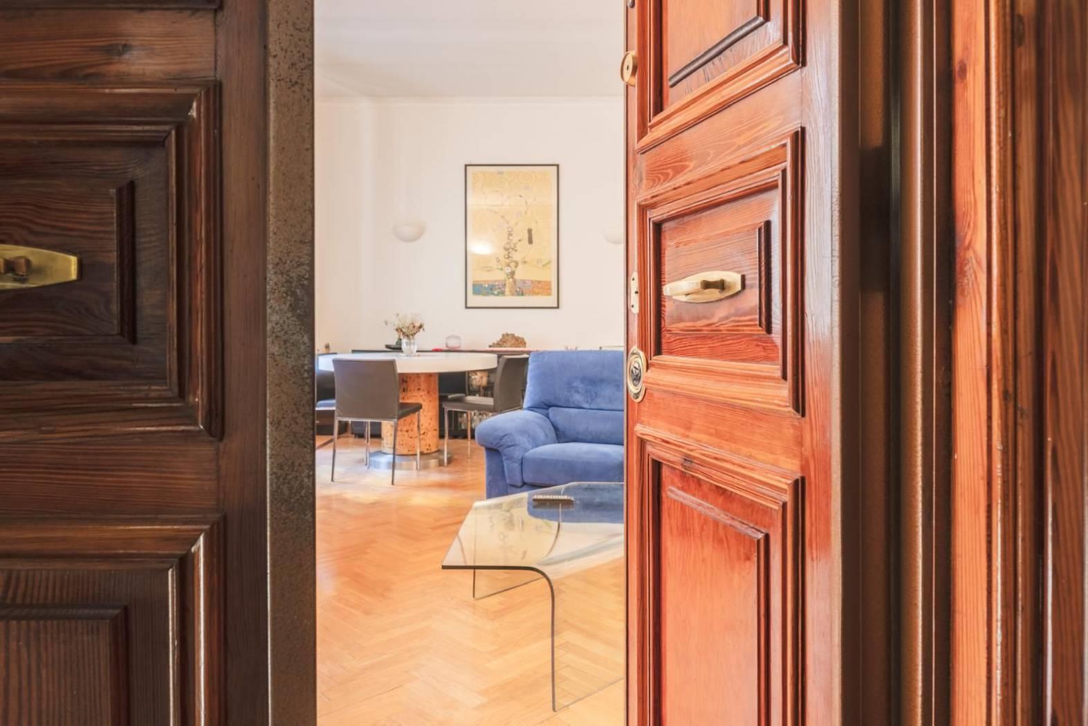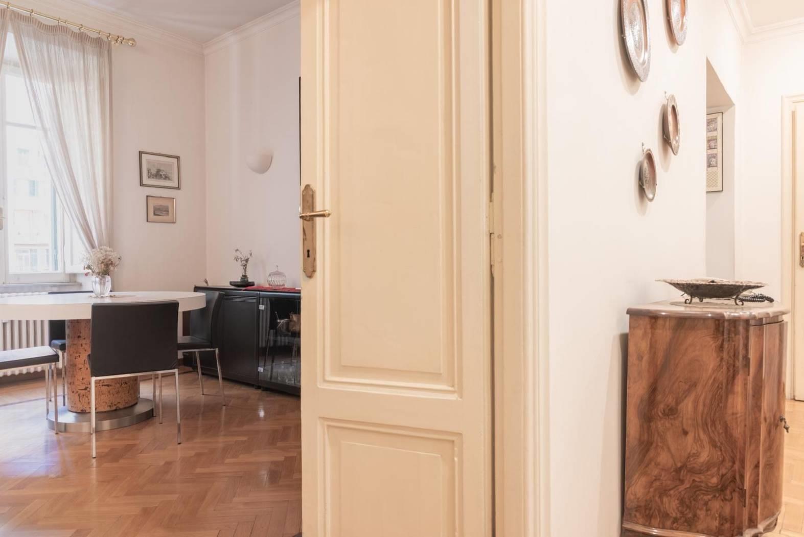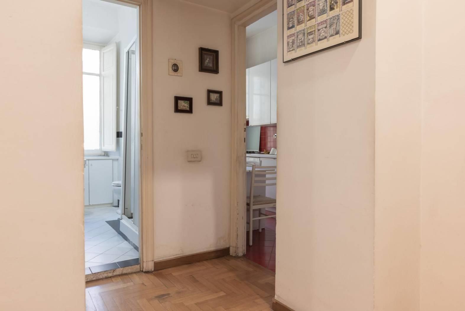 Ogni dettaglio racconta una storia: i pavimenti originali, le ampie finestre. È una casa che parla di eleganza senza tempo, perfetta per chi desidera vivere Roma in tutta la sua autenticità, tra palazzi storici, botteghe, ristoranti e le vie più suggestive del centro.
