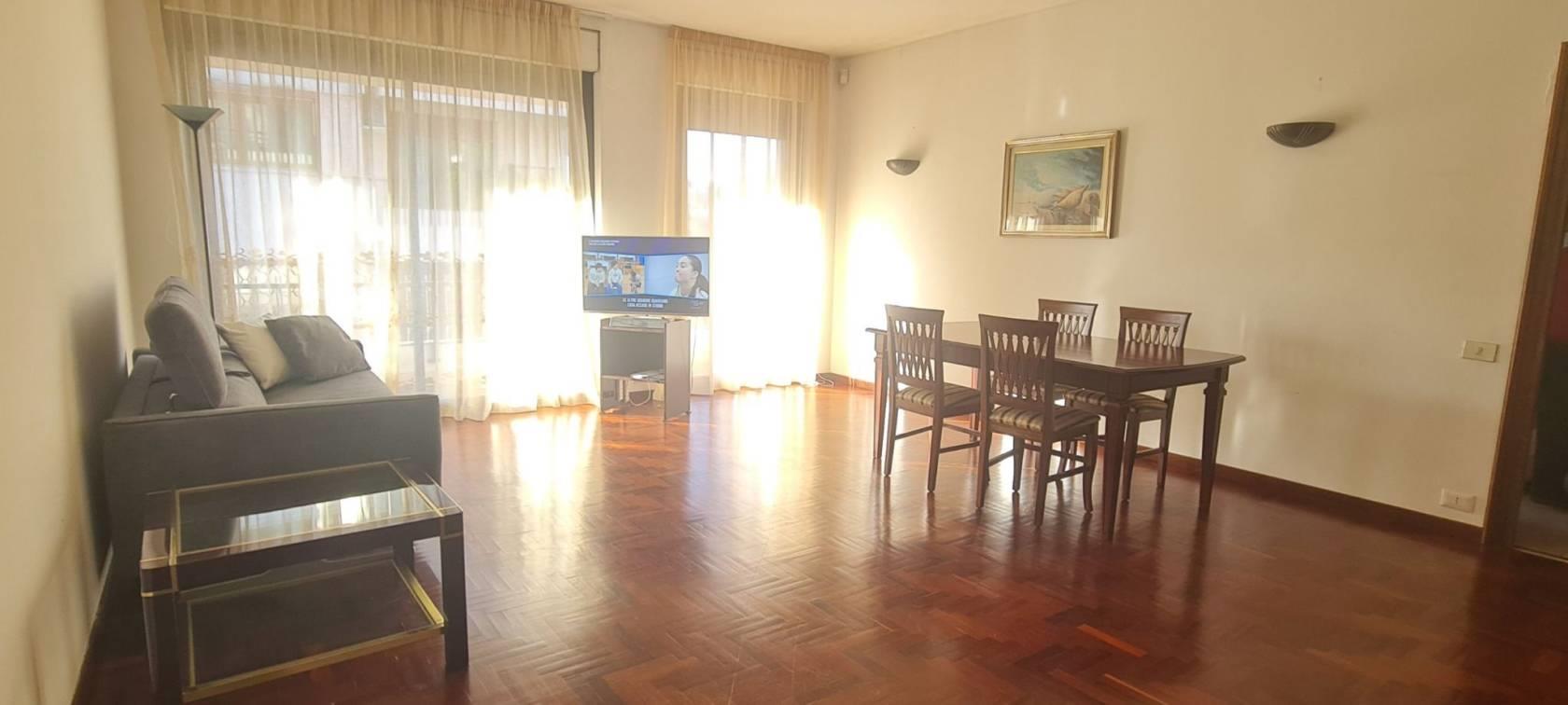 v. Sestriere 5, in un comprensorio con servizio di portineria, immerso nel verde e nella tranquillità, affittasi appartamento SEMI ARREDATO di 130mq posto al 3 piano, luminoso, composto da salone con terrazzo, ampia cucina abitabile, corridoio, 2 camere da letto (ambedue affacciano sui terrazzi), doppi servizi (con vasca e con doccia), posto auto coperto. La richiesta è di 1.750,00 Euro. Condominio 245,00Euro mensili, AC, riscaldamento autonomo. Classe energetica F. Libero da subito. Gradite ambasciate ed enti multinazionali. Le presenti informazioni e planimetrie sono meramente indicative e non costituiscono elementi contrattuali. Per ulteriori informazioni o per fissare un sopralluogo contattare Servizi Immobiliari J.L. di Jolanta Lysik al numero 339 42 70 734, anche su Whatsapp, o via email serviziimmobiliari2003@gmail.com.