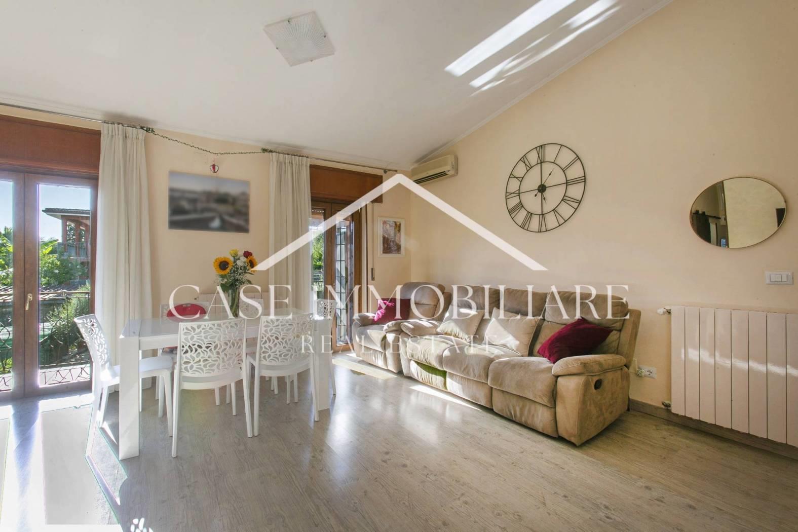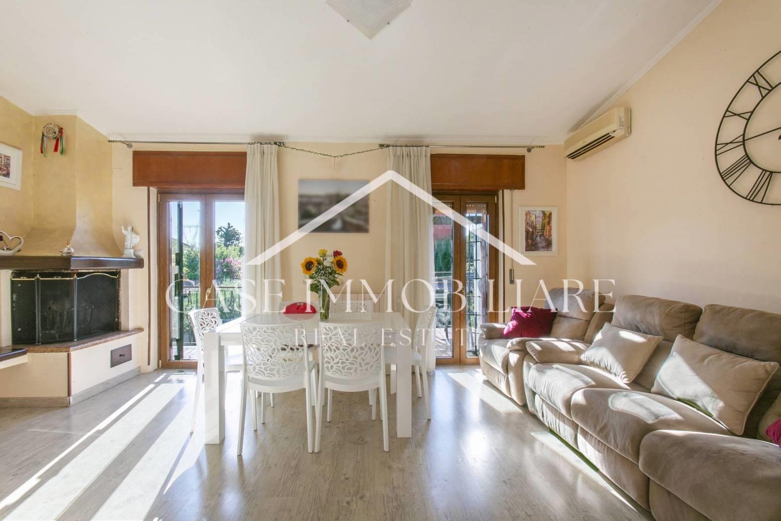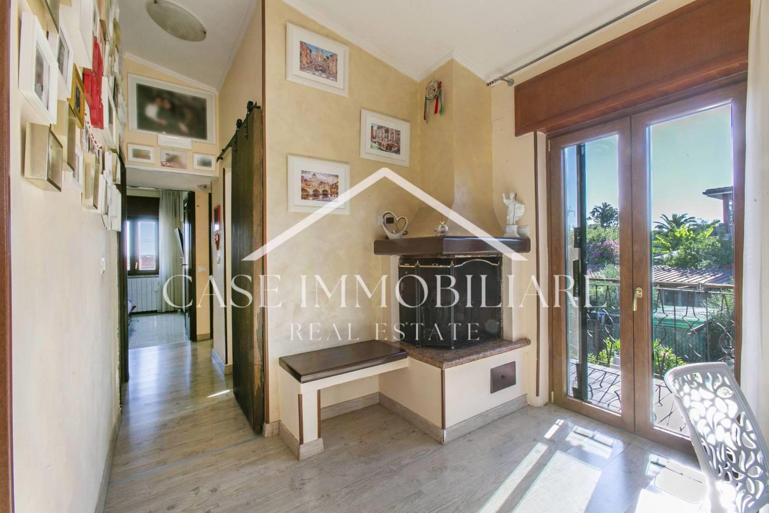 La casa internamente è organizzata in ogni minimo dettaglio: pavimento in gres effetto legno, tende da sole e ripostiglio sul balcone, camino, climatizzatori, grate, termoconvettore in bagno, sistema di gestione del riscaldamento da remoto con Wi-Fi.