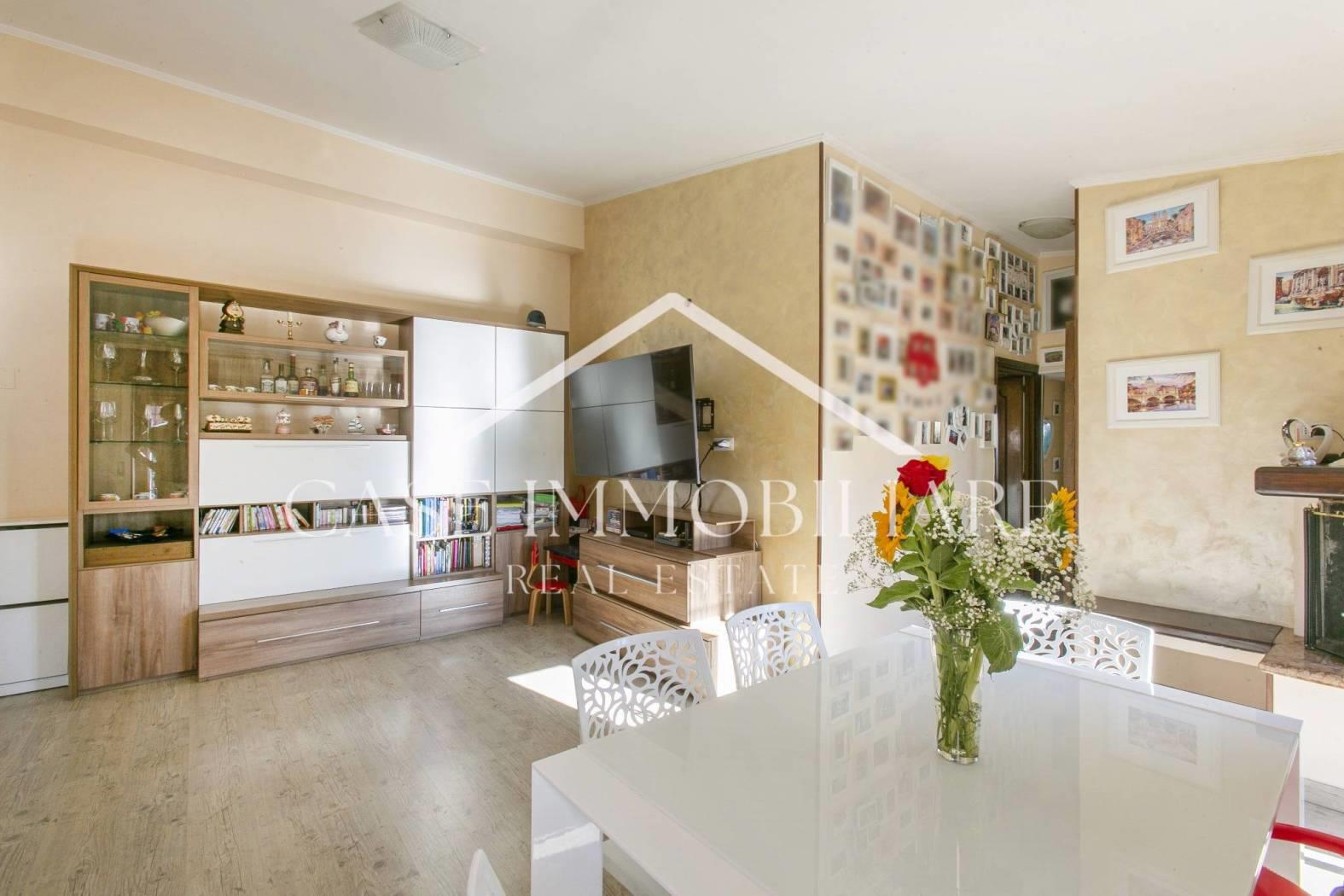 Il trilocale è così composto : soggiorno con camino e zona pranzo con uscita al gradevole balcone abitabile, ampio ripostiglio adibito a lavanderia-cappottiera, due comode camere da letto e un bagno finestrato con vasca.