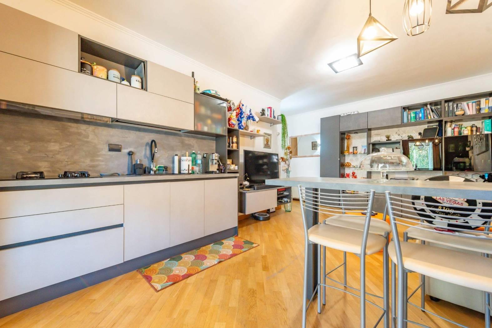 Gli arredi compresi nel prezzo di vendita sono: arredo cucina, libreria in salone, cabina armadio e arredo bagno.