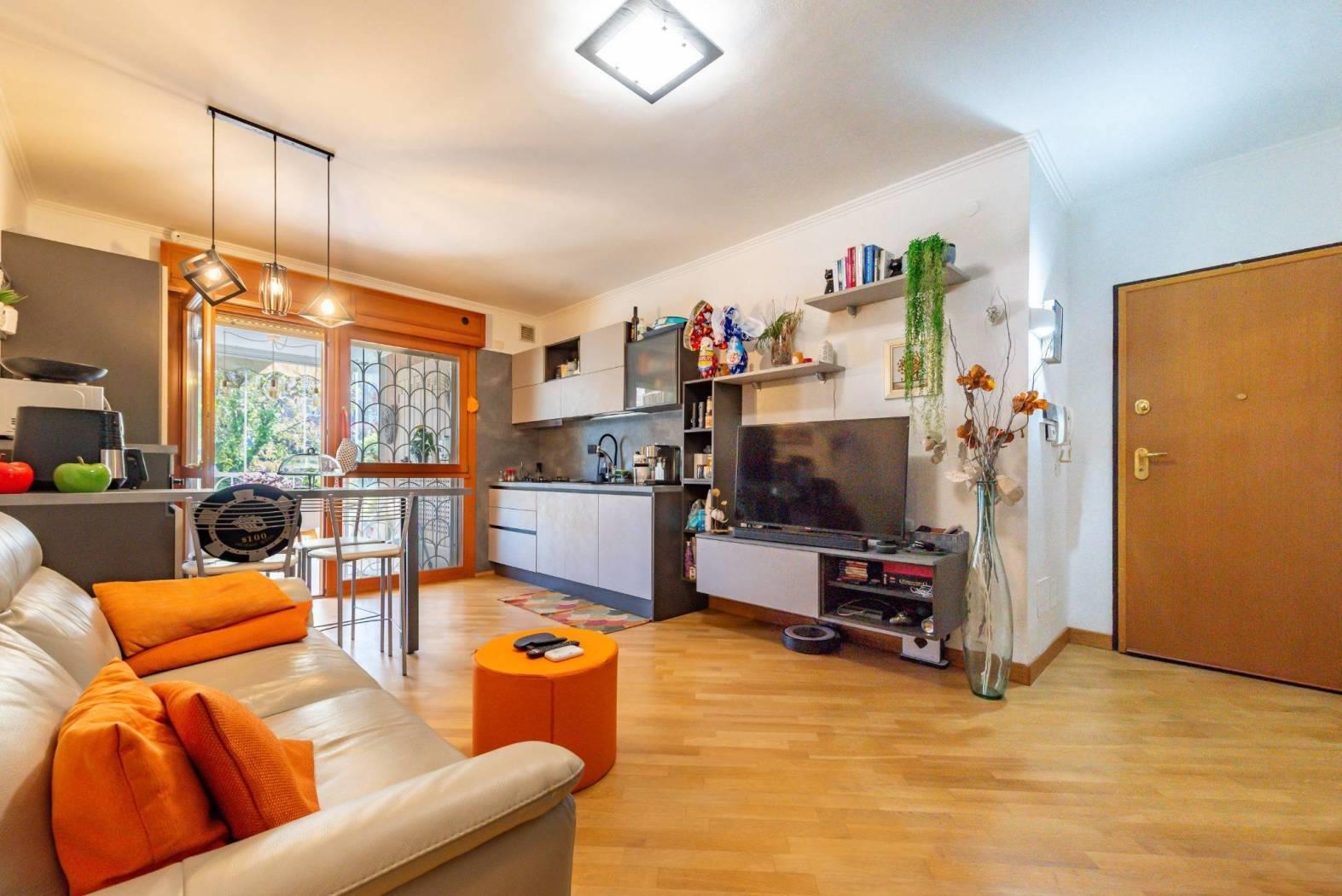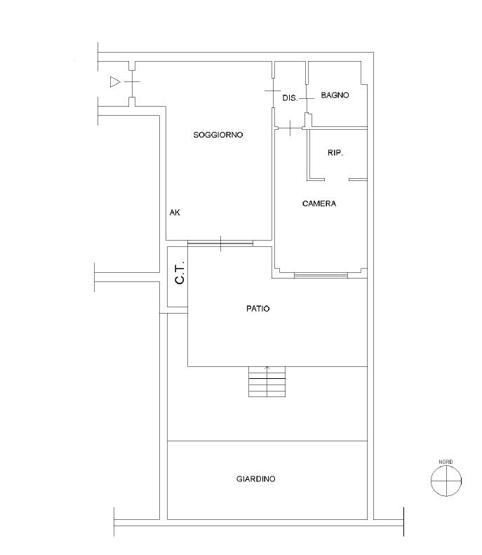 salone, cucina a vista, 1 camera da letto con cabina armadio e bagno. Lo spazio esterno si compone da comodo patio vivibile e da un giardino di mq 30 c.a.