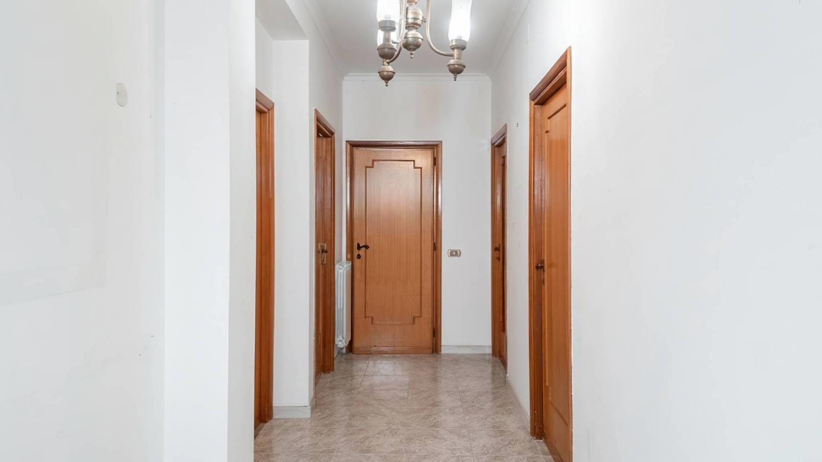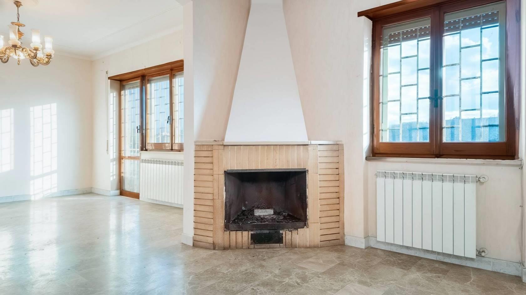 L’ingresso si apre su un ampio corridoio che separa con equilibrio la zona giorno dalla zona notte, garantendo una distribuzione degli ambienti pratica e funzionale. La zona giorno è composta da un salone doppio dotato di camino e balcone, un ambiente ampio e versatile che, grazie alla sua generosa metratura, permette di ricavare un’ulteriore camera da letto, trasformando l’immobile da trilocale a quadrilocale. Completano la zona una prima camera da letto, un bagno finestrato con vasca e una cucina abitabile di ottime dimensioni.