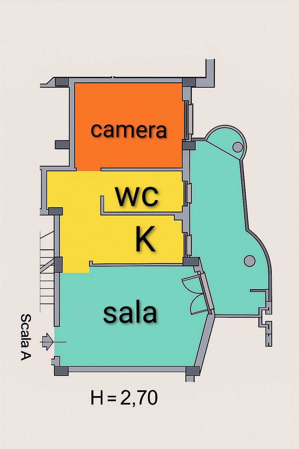 L'ampio salone si apre su un grande balcone, ideale per godersi momenti di relax all'aria aperta. La camera matrimoniale è accogliente e ben illuminata, mentre la cucina è funzionale e pronta per essere personalizzata. Il bagno, moderno e pratico, completa l'offerta.