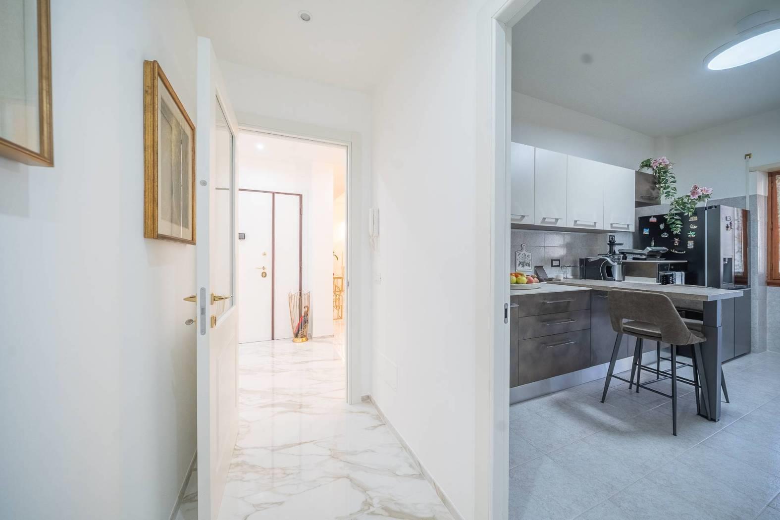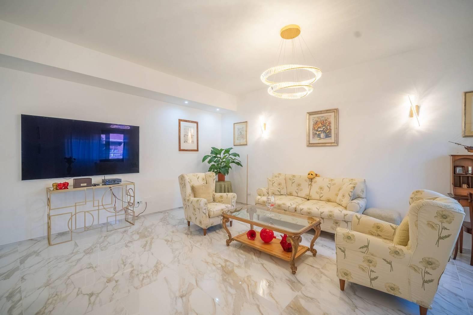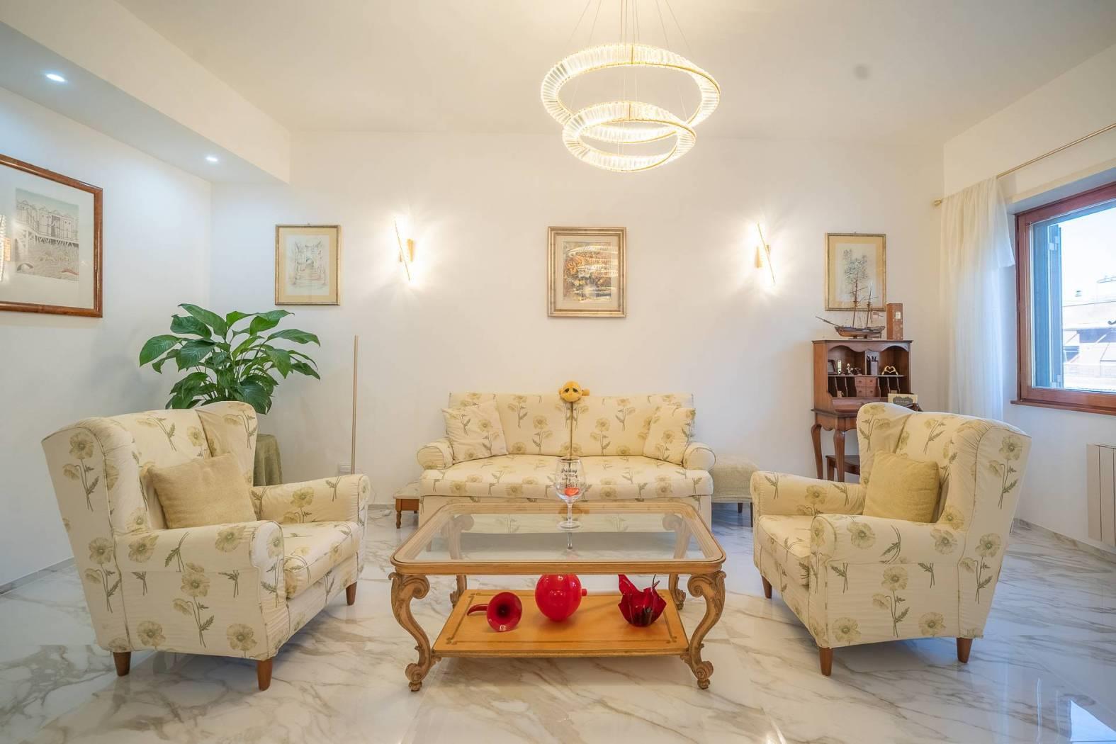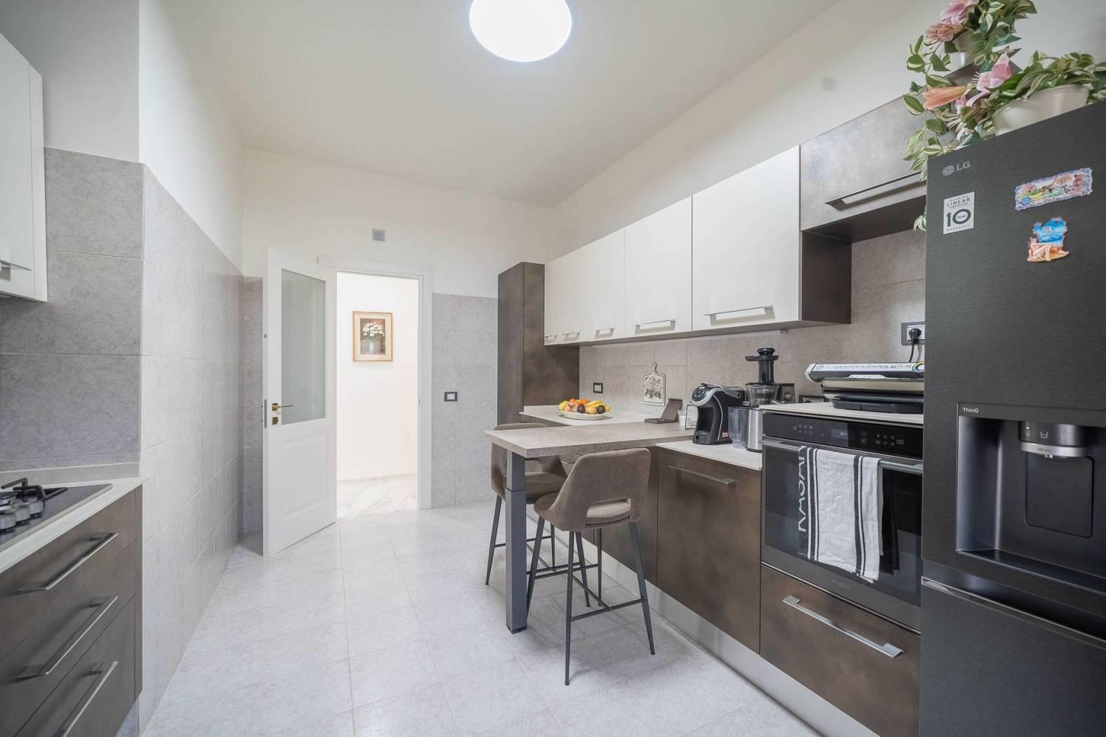 Entrando ci accoglie un ampio salone dotato di varie finestre che conferiscono grande luminosità all'ambiente. Proseguendo troviamo la cucina abitabile dotata di porta finestra che permette l'uscita al balcone. A seguire, tramite un corridoio si giunge alla zona notte dotata di tre ampie camere da letto, di cui una padronale e due adibite attualmente a camerette, dotate di un balcone in comune. L'immobile si completa con due bagni finestrati e si trova in ottimo stato manutentivo come da fotografie.